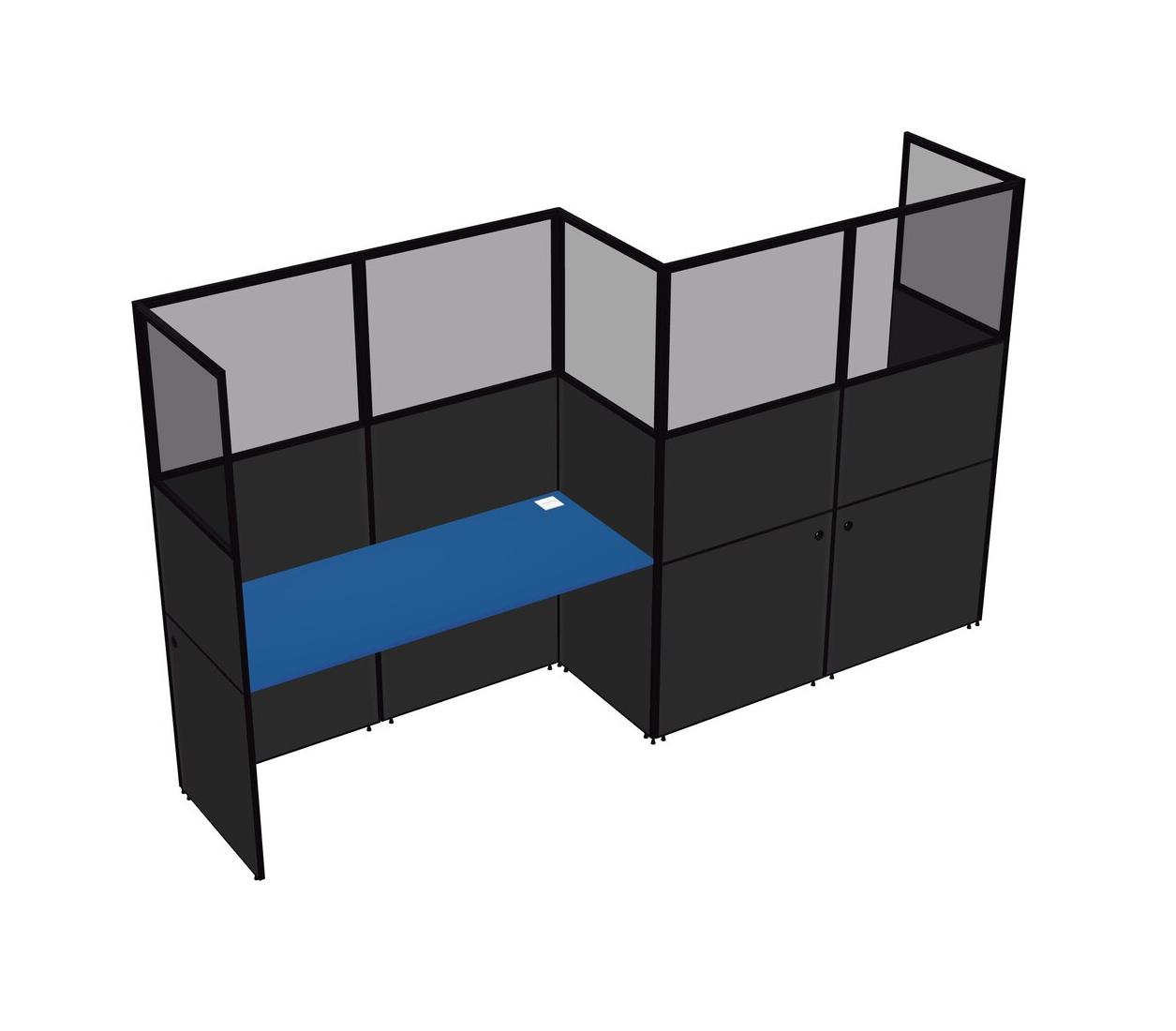 Prism Blue Rectangular Cubicle Workstations For 2 - Zigzag Formation