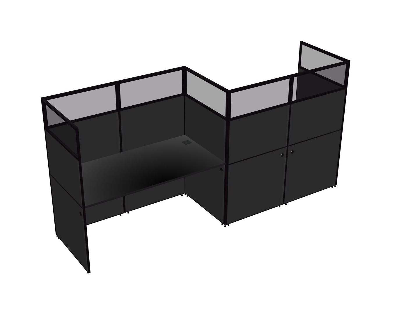 Black Rectangular Cubicle Workstations For 2 - Zigzag Formation