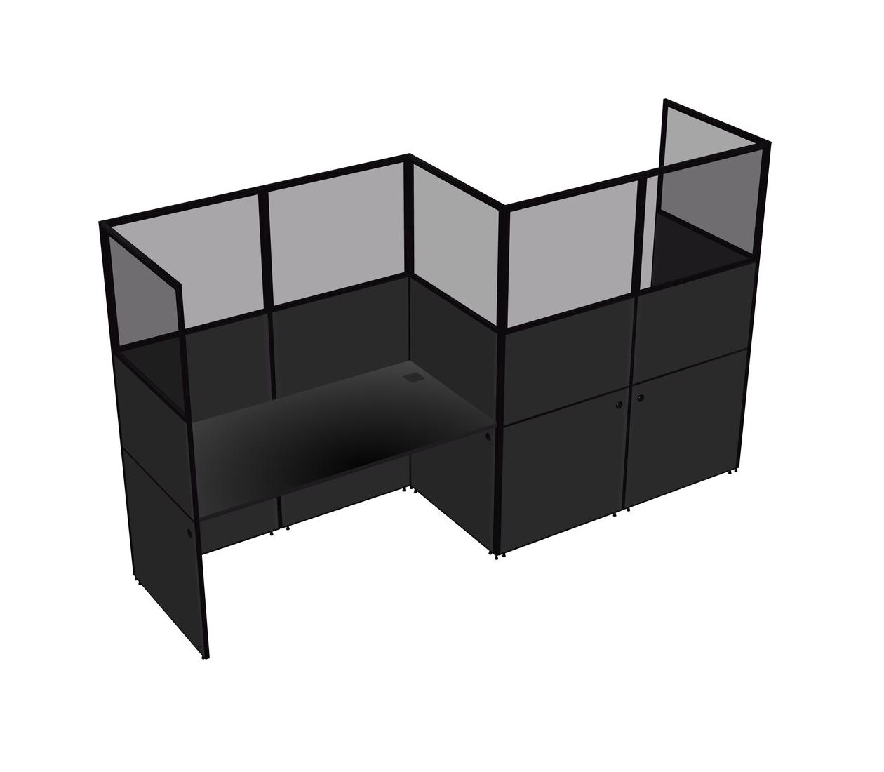 Black Rectangular Cubicle Workstations For 2 - Zigzag Formation