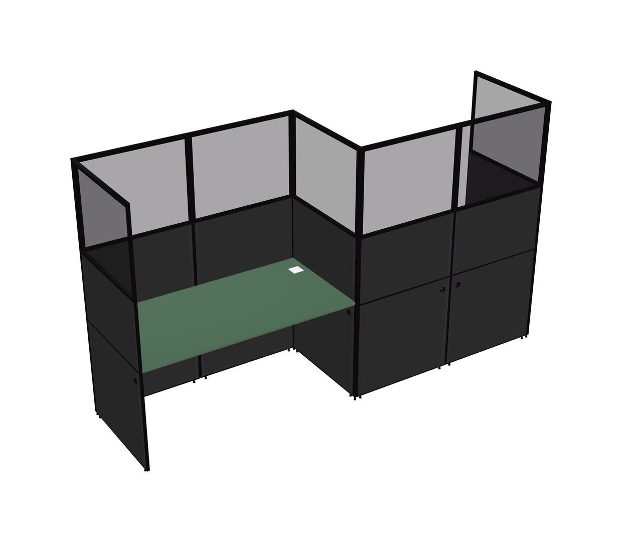 Green Rectangular Cubicle Workstations For 2 - Zigzag Formation