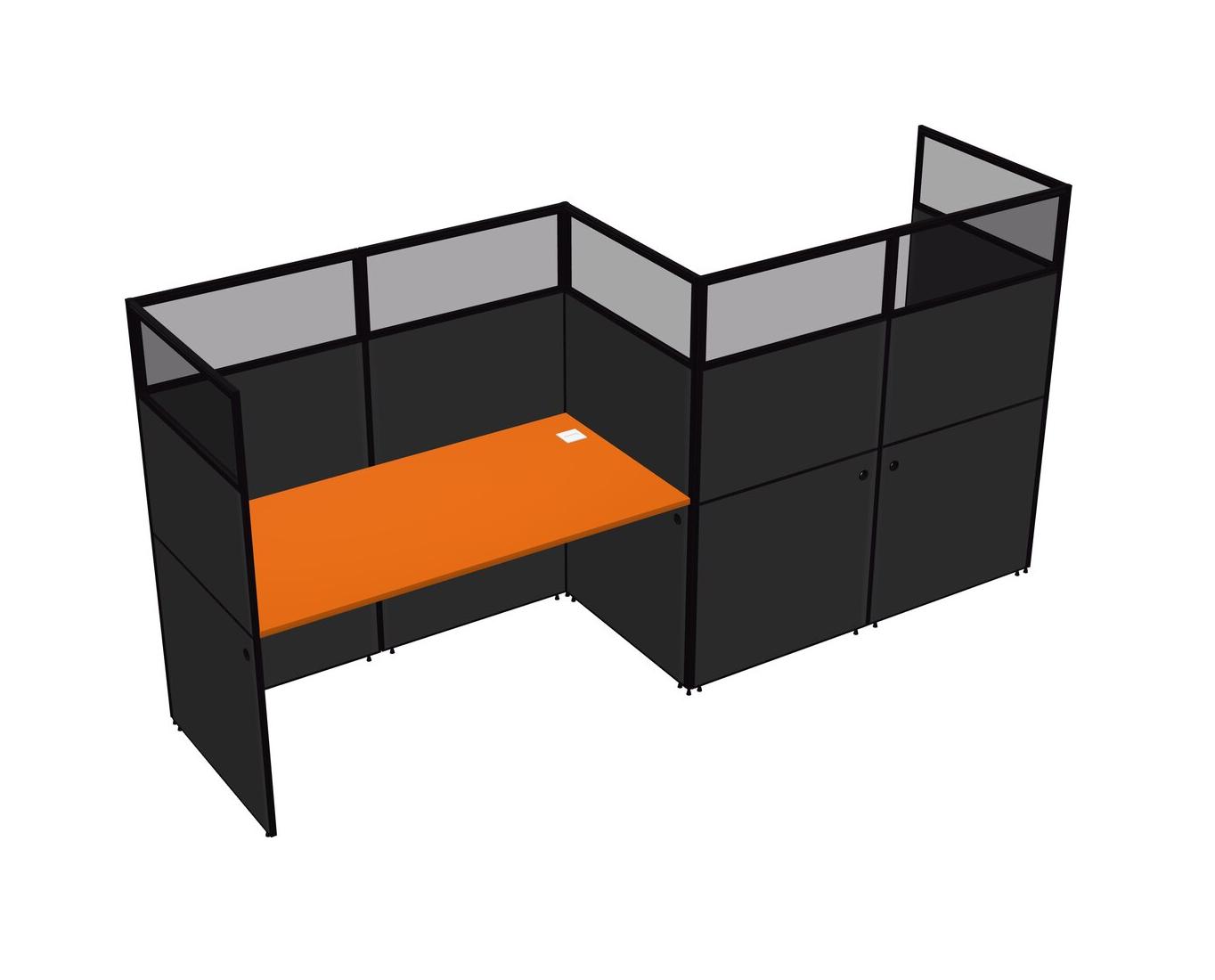 Orange Rectangular Cubicle Workstations For 2 - Zigzag Formation