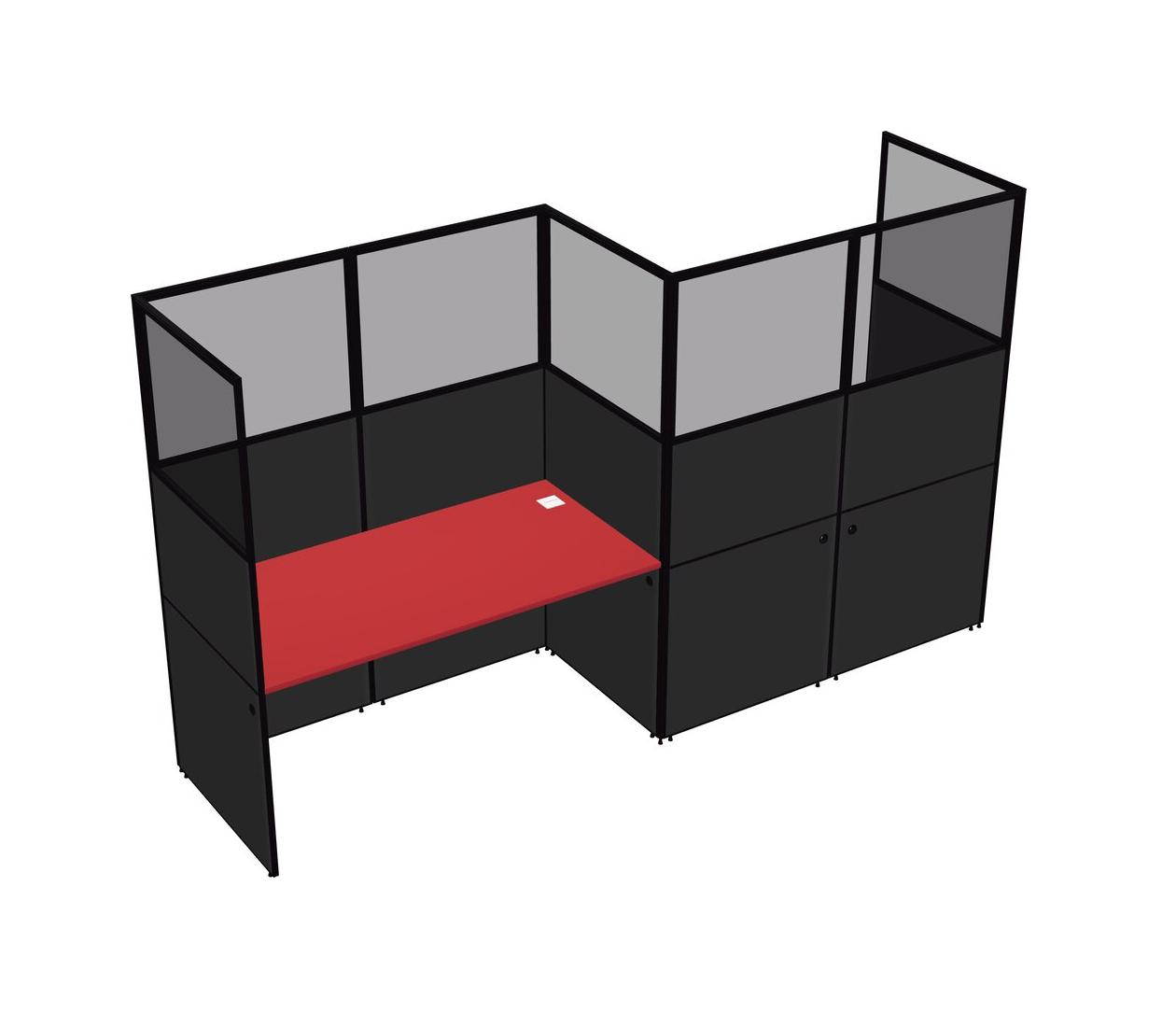 Prism Red Rectangular Cubicle Workstations For 2 - Zigzag Formation