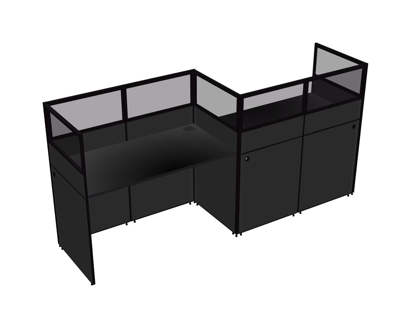 Black Rectangular Cubicle Workstations For 2 - Zigzag Formation