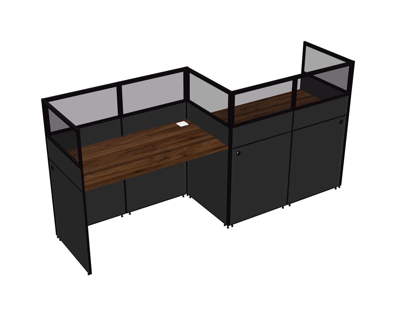 Columbia Walnut Rectangular Cubicle Workstations For 2 - Zigzag Formation