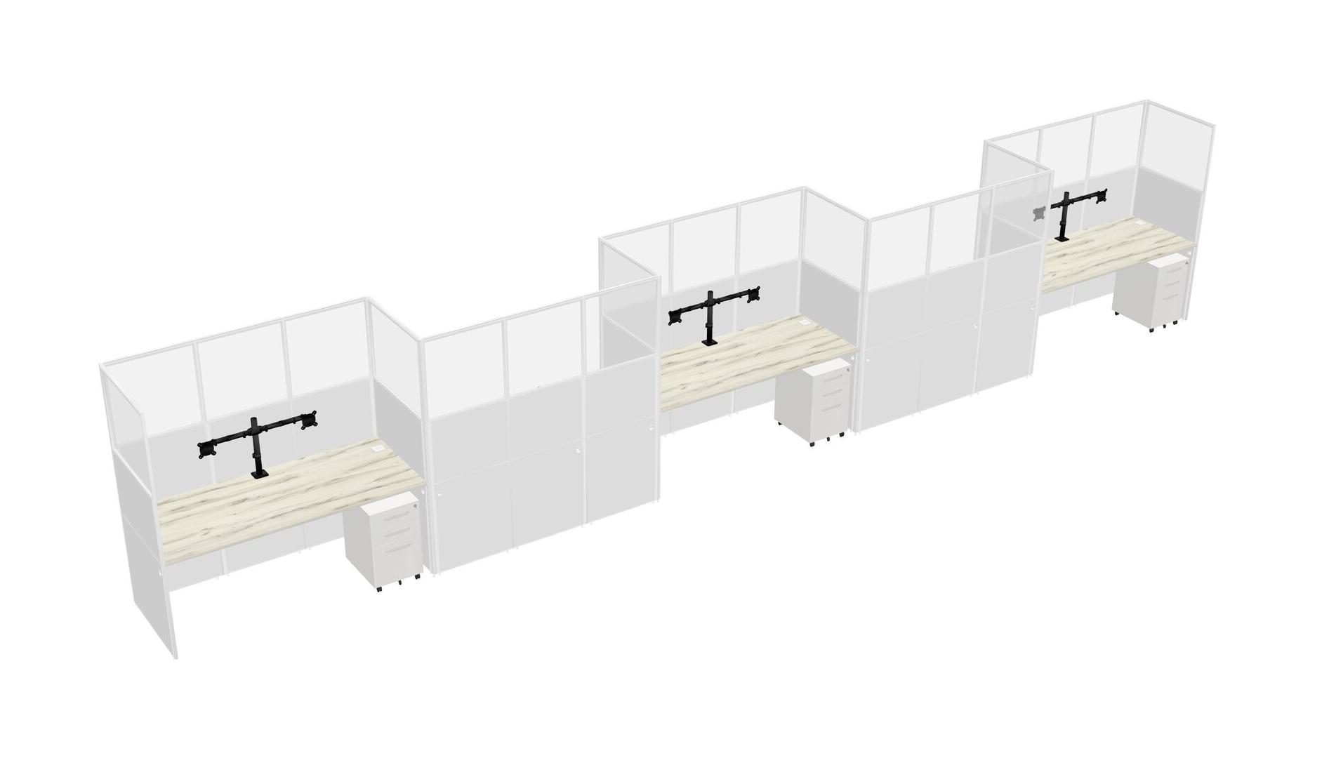 Heinne Holz Rectangular Cubicle Workstations For 5 - Zigzag Formation + White Metal Mobile Drawers