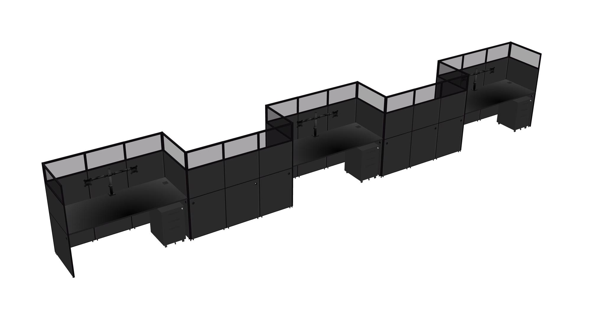 Black Rectangular Cubicle Workstations For 5 - Zigzag Formation + Black Metal Mobile Drawers