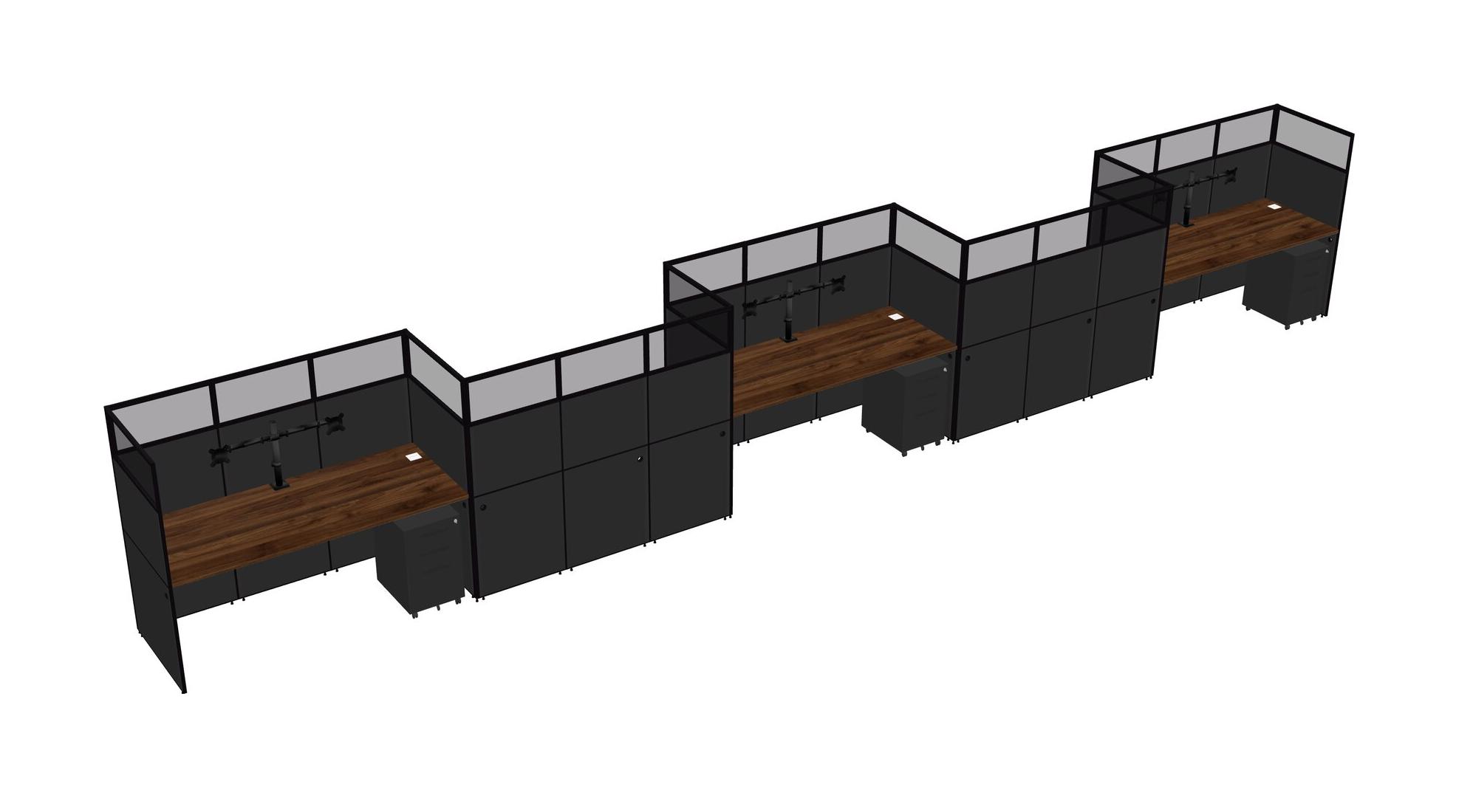 Columbia Walnut Rectangular Cubicle Workstations For 5 - Zigzag Formation + Black Metal Mobile Drawers