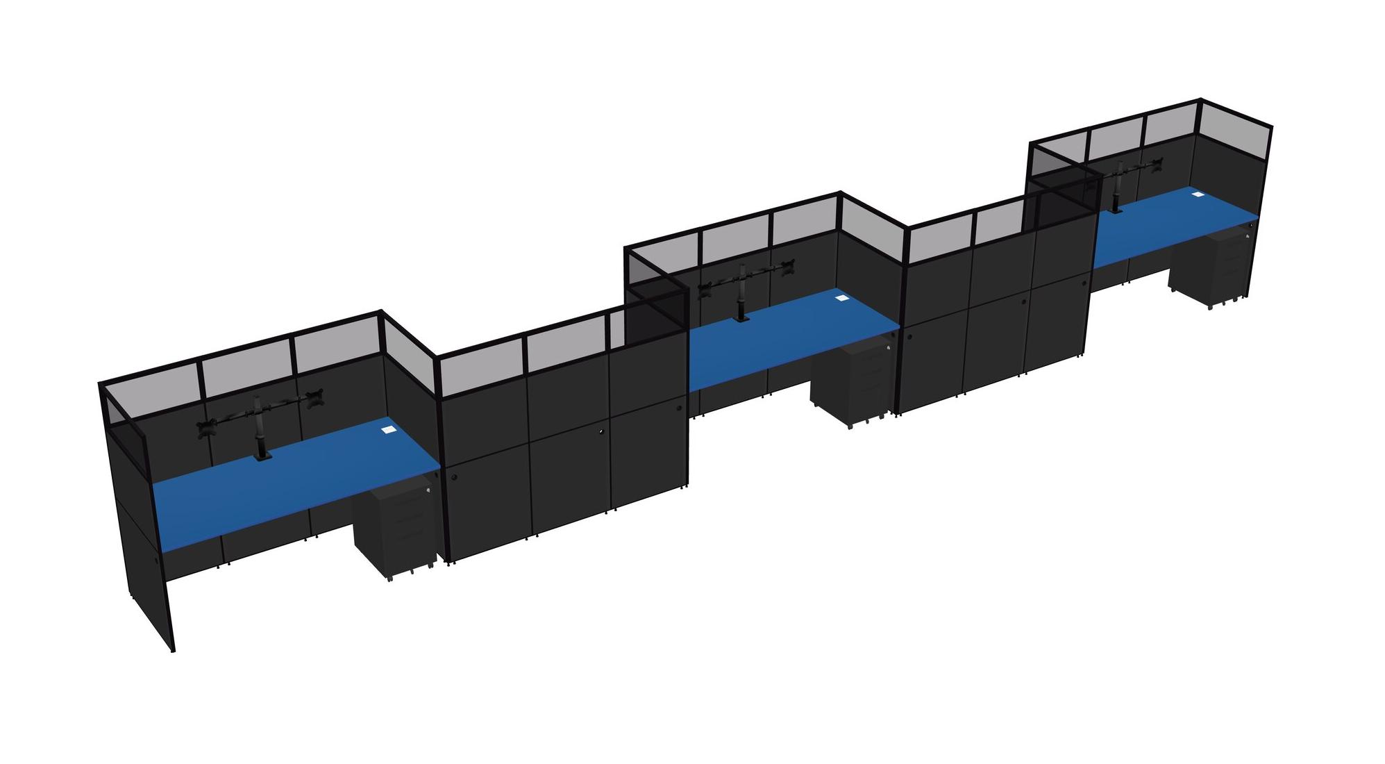 Prism Blue Rectangular Cubicle Workstations For 5 - Zigzag Formation + Black Metal Mobile Drawers