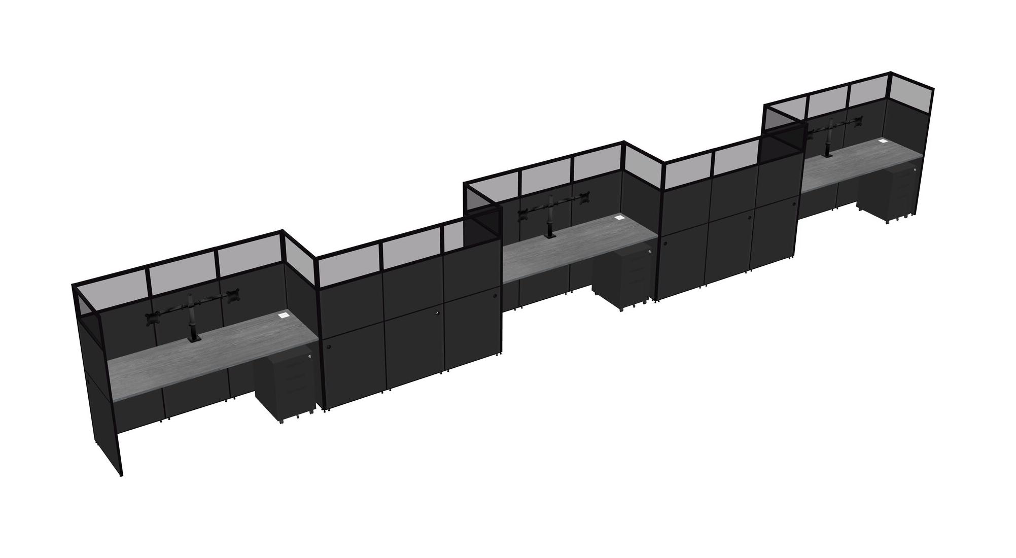 Grey Rectangular Cubicle Workstations For 5 - Zigzag Formation + Black Metal Mobile Drawers