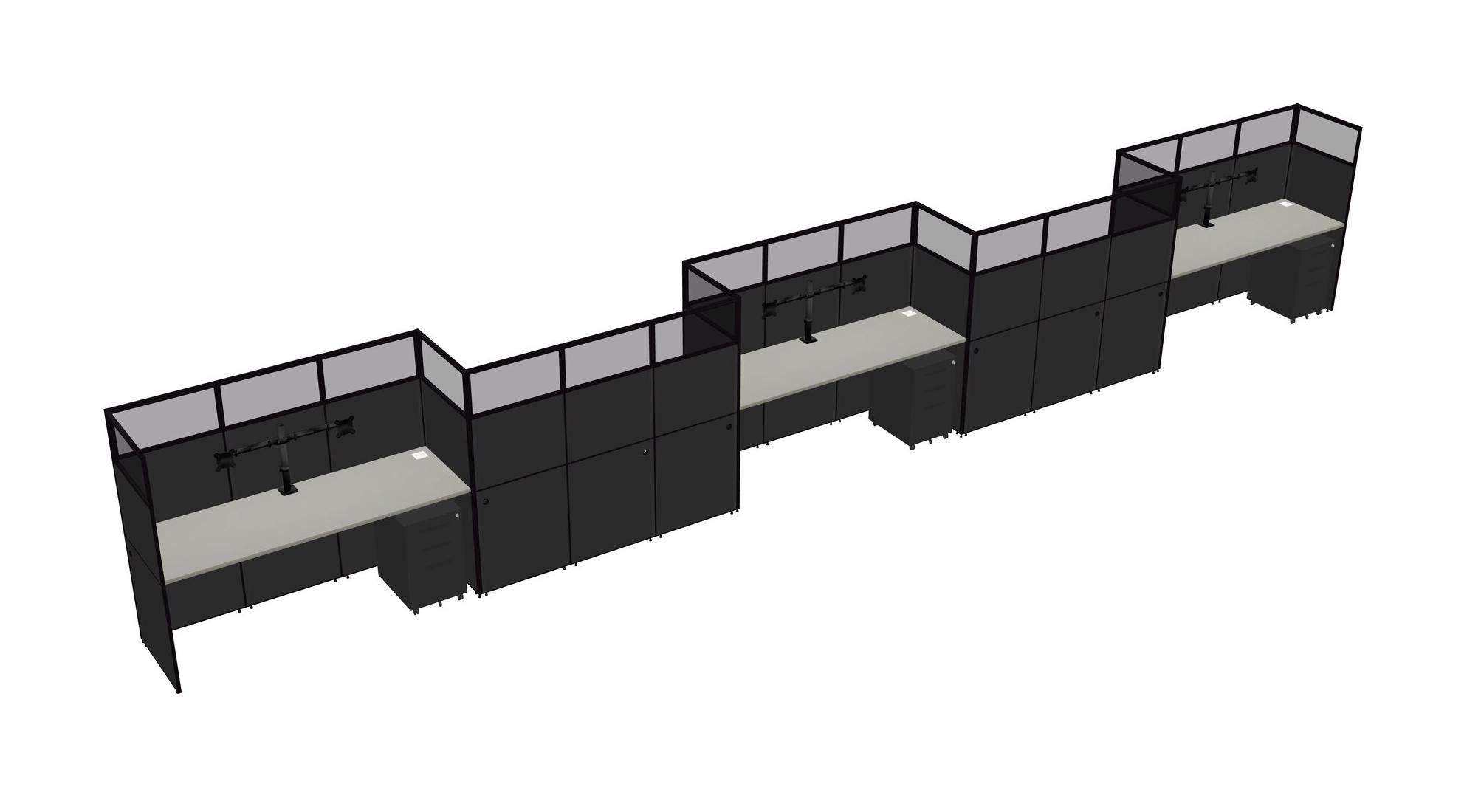 Grey Shadows Rectangular Cubicle Workstations For 5 - Zigzag Formation + Black Metal Mobile Drawers