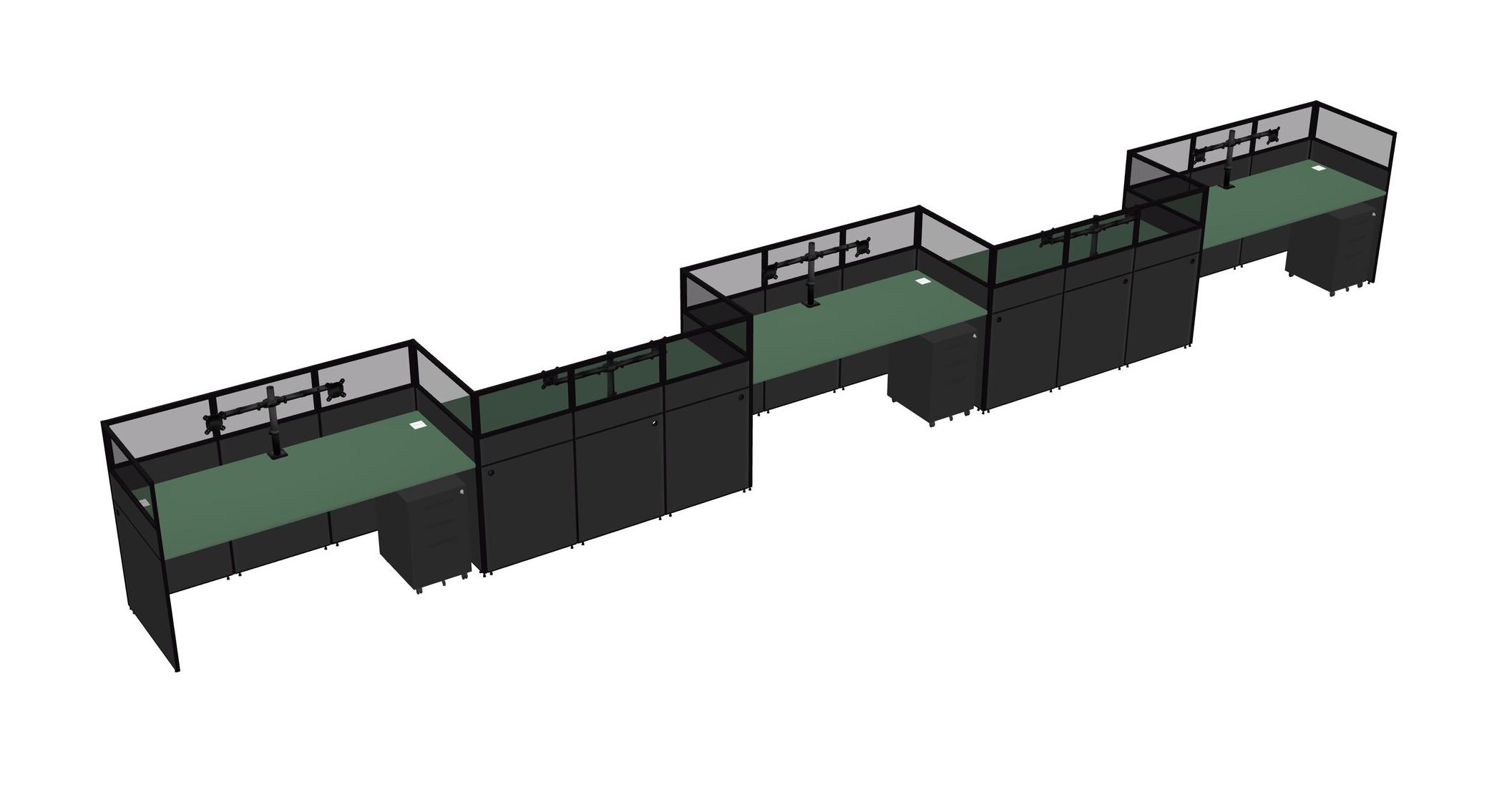 Green Rectangular Cubicle Workstations For 5 - Zigzag Formation + Black Metal Mobile Drawers
