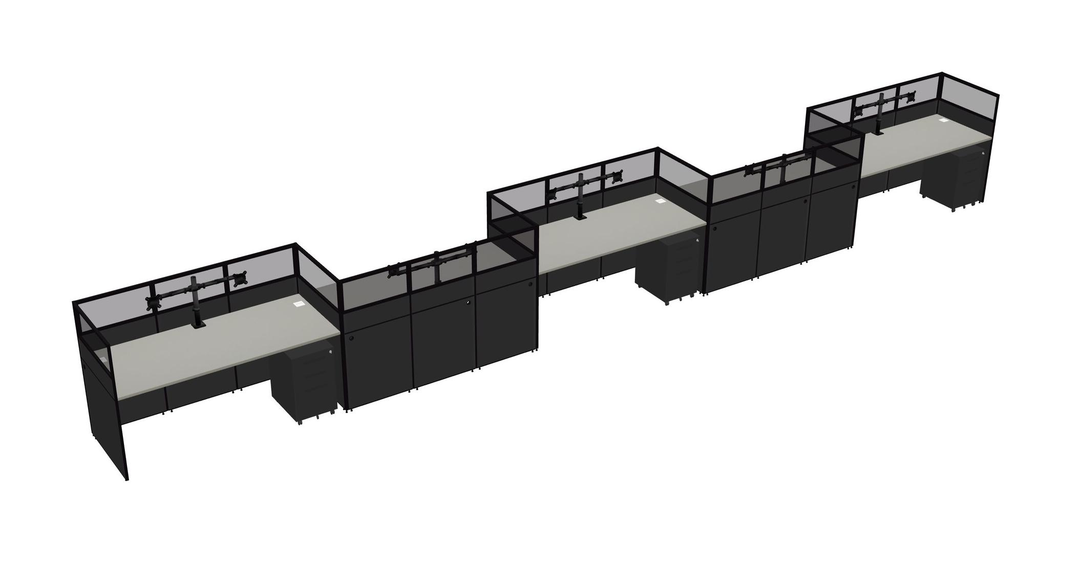 Grey Shadows Rectangular Cubicle Workstations For 5 - Zigzag Formation + Black Metal Mobile Drawers