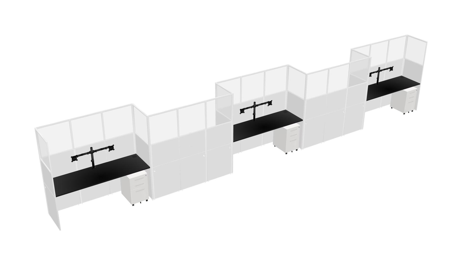 Black Rectangular Cubicle Workstations For 5 - Zigzag Formation + White Metal Mobile Drawers