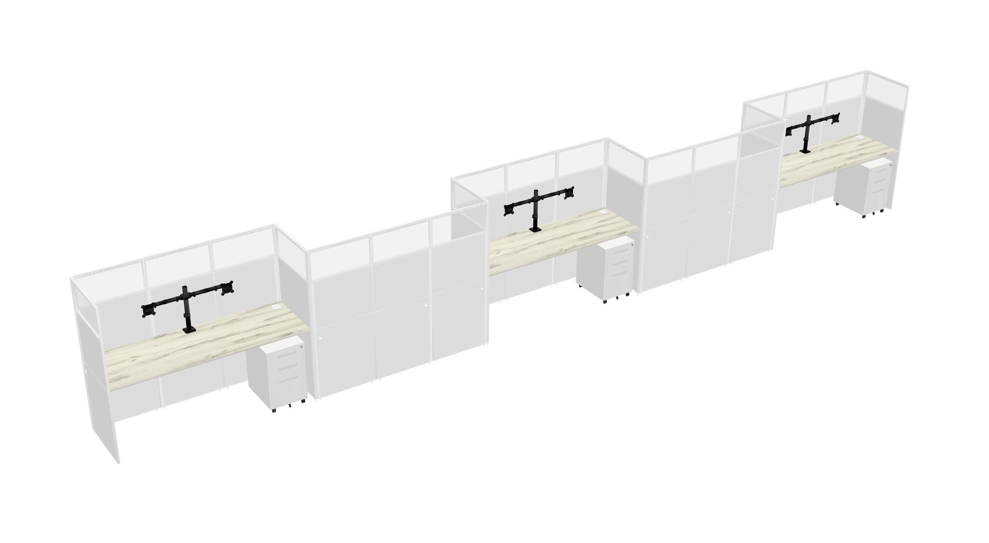 Heinne Holz Rectangular Cubicle Workstations For 5 - Zigzag Formation + White Metal Mobile Drawers