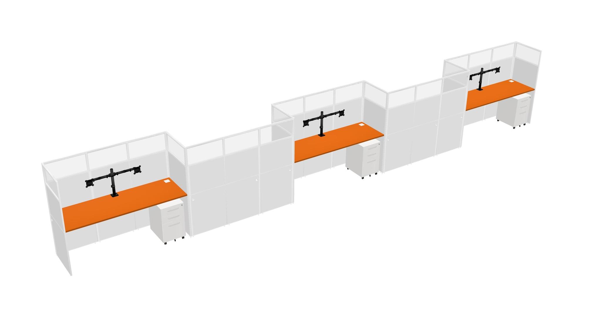 Orange Rectangular Cubicle Workstations For 5 - Zigzag Formation + White Metal Mobile Drawers