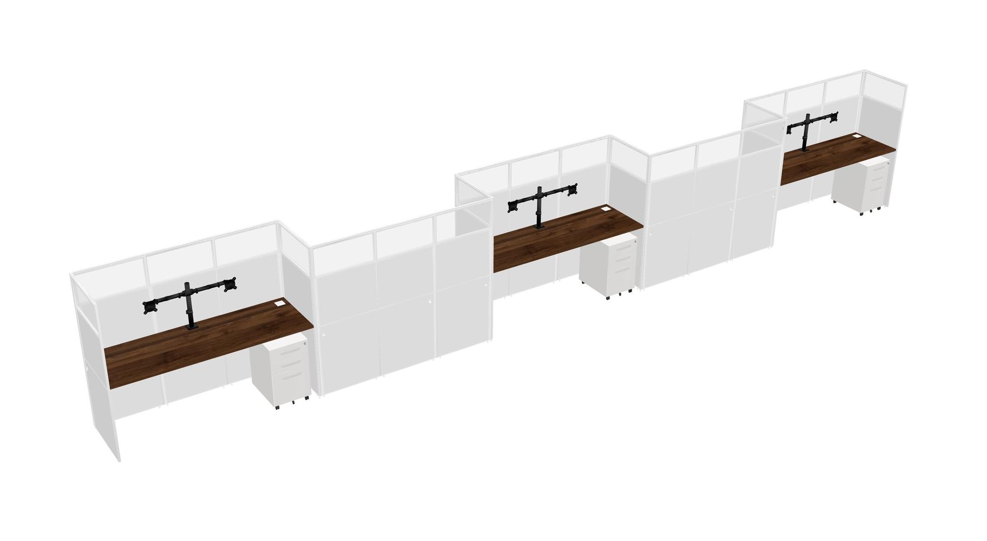 Columbia Walnut Rectangular Cubicle Workstations For 5 - Zigzag Formation + White Metal Mobile Drawers