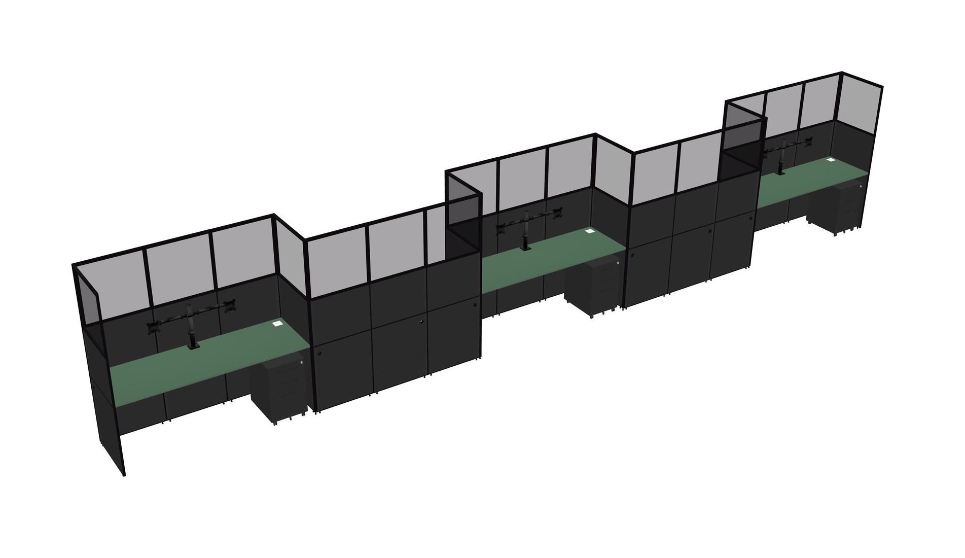 Green Rectangular Cubicle Workstations For 5 - Zigzag Formation + Black Metal Mobile Drawers