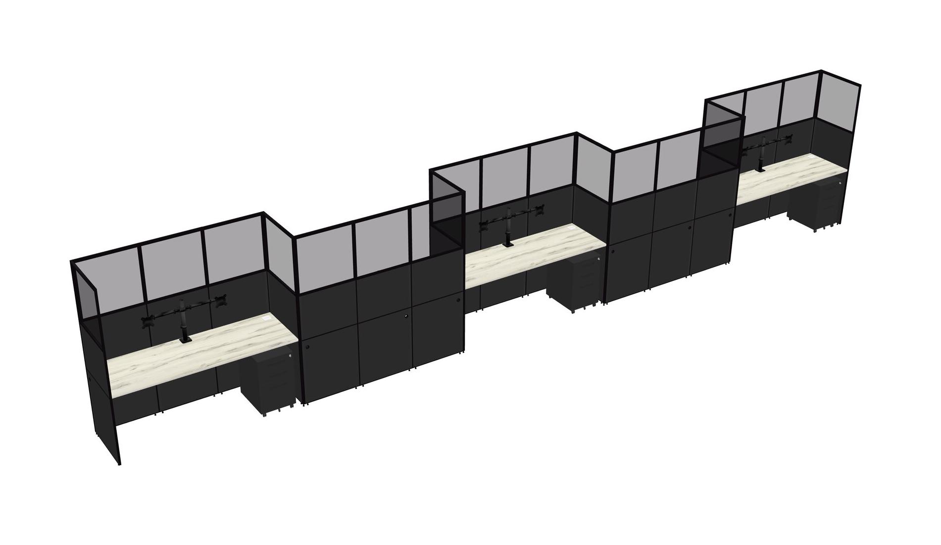 Heinne Holz Rectangular Cubicle Workstations For 5 - Zigzag Formation + Black Metal Mobile Drawers