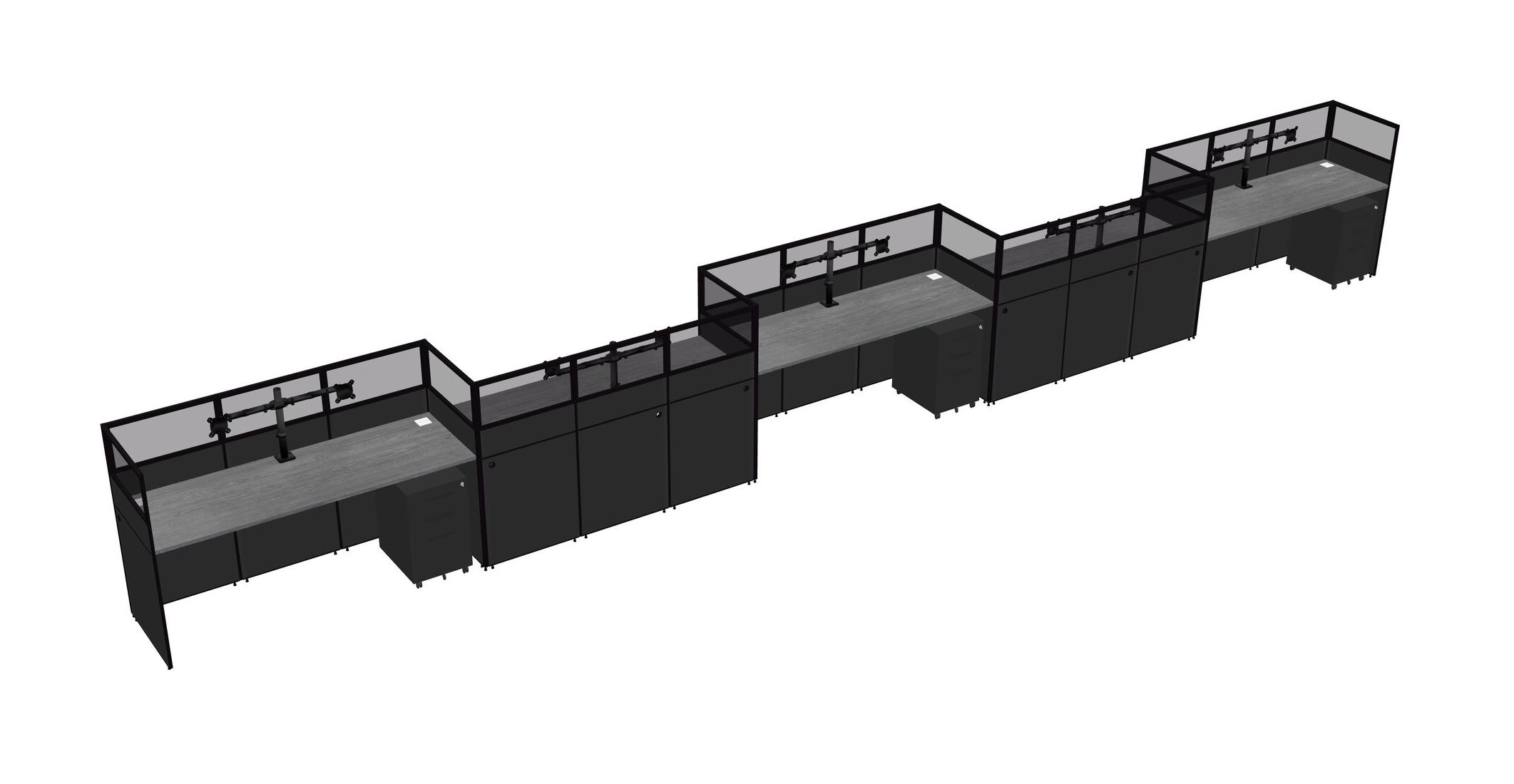 Grey Rectangular Cubicle Workstations For 5 - Zigzag Formation + Black Metal Mobile Drawers