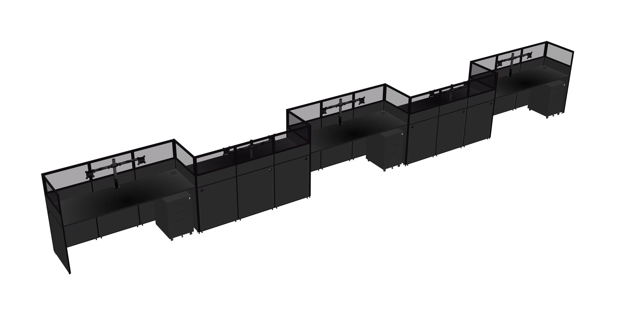 Black Rectangular Cubicle Workstations For 5 - Zigzag Formation + Black Metal Mobile Drawers