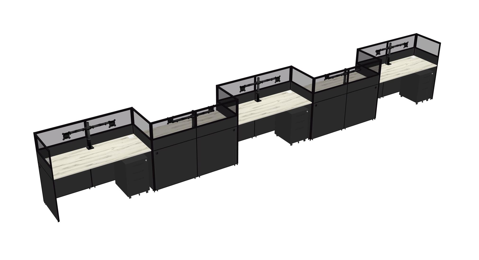 Heinne Holz Rectangular Cubicle Workstations For 5 - Zigzag Formation + Black Metal Mobile Drawers