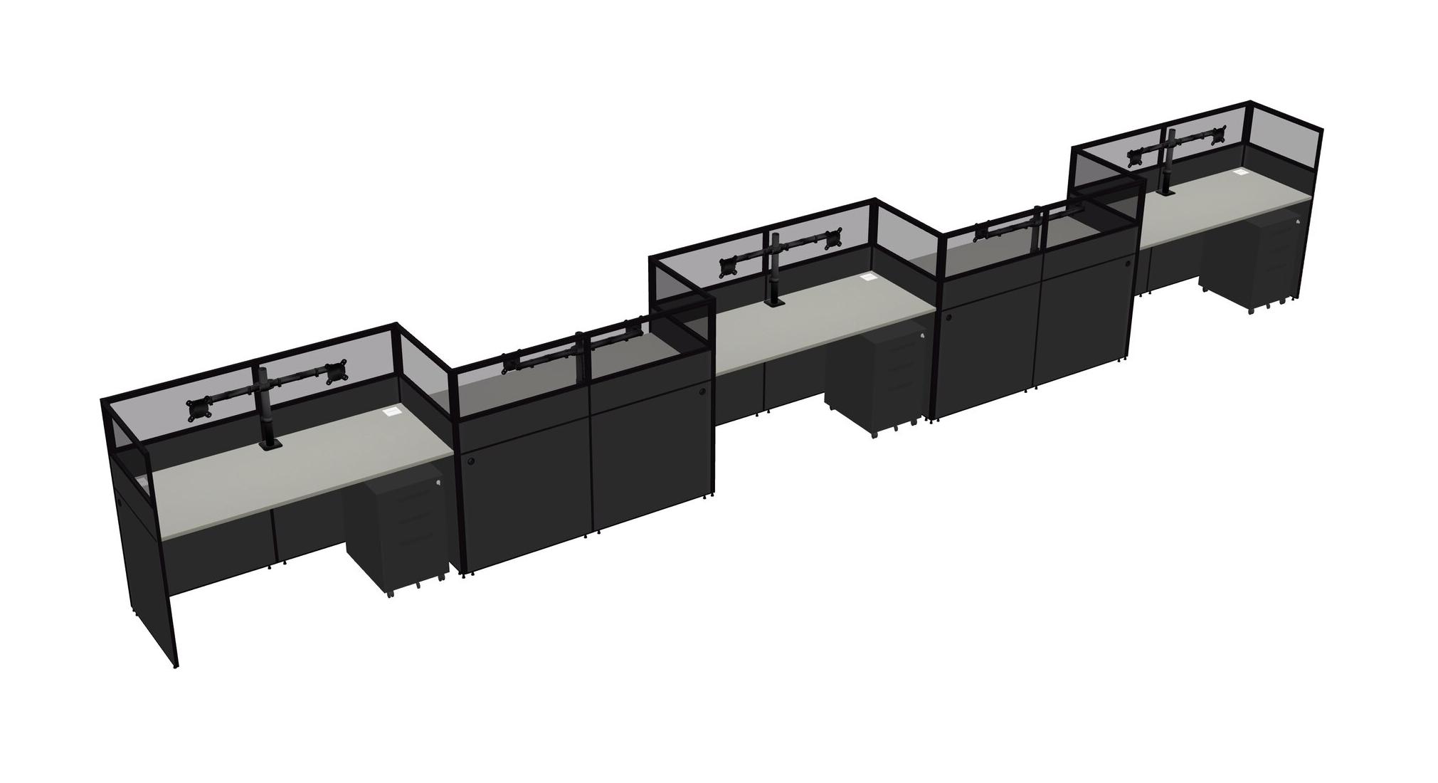 Grey Shadows Rectangular Cubicle Workstations For 5 - Zigzag Formation + Black Metal Mobile Drawers