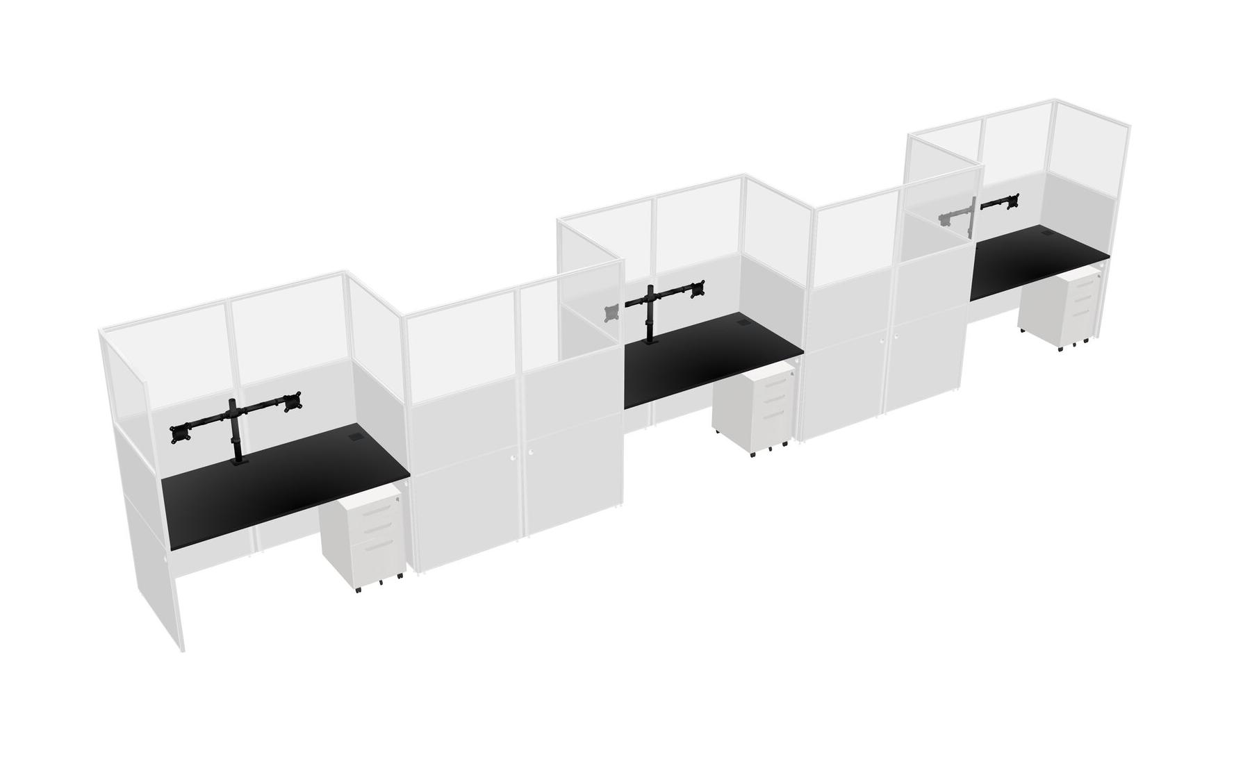 Black Rectangular Cubicle Workstations For 5 - Zigzag Formation + White Metal Mobile Drawers