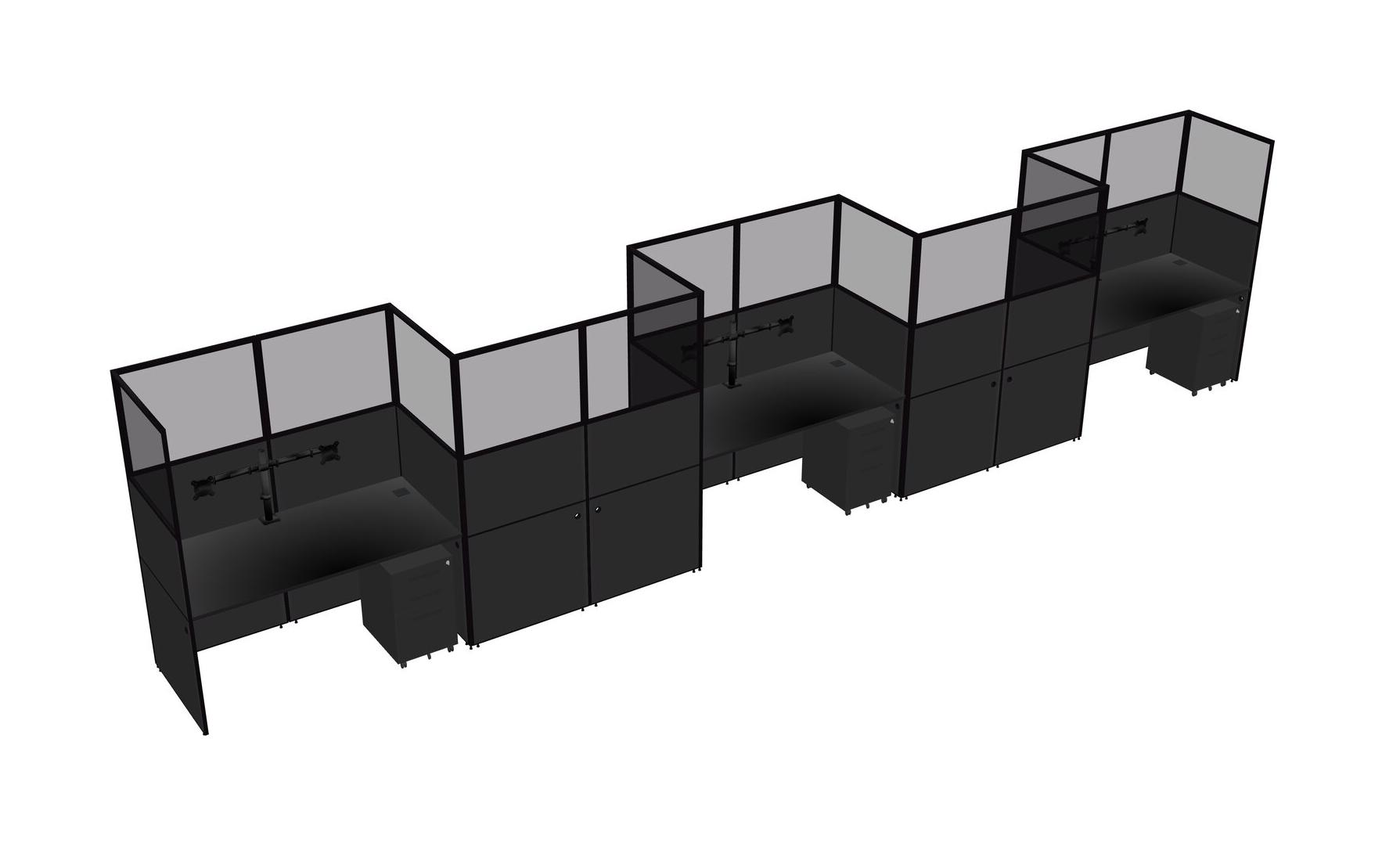 Black Rectangular Cubicle Workstations For 5 - Zigzag Formation + Black Metal Mobile Drawers