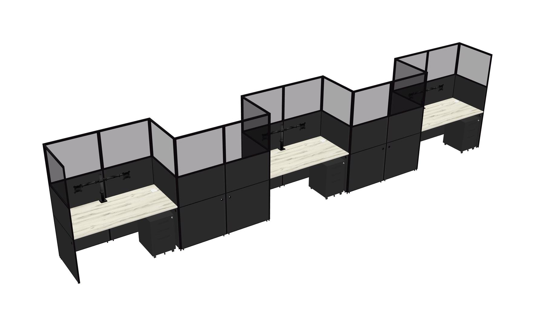 Heinne Holz Rectangular Cubicle Workstations For 5 - Zigzag Formation + Black Metal Mobile Drawers