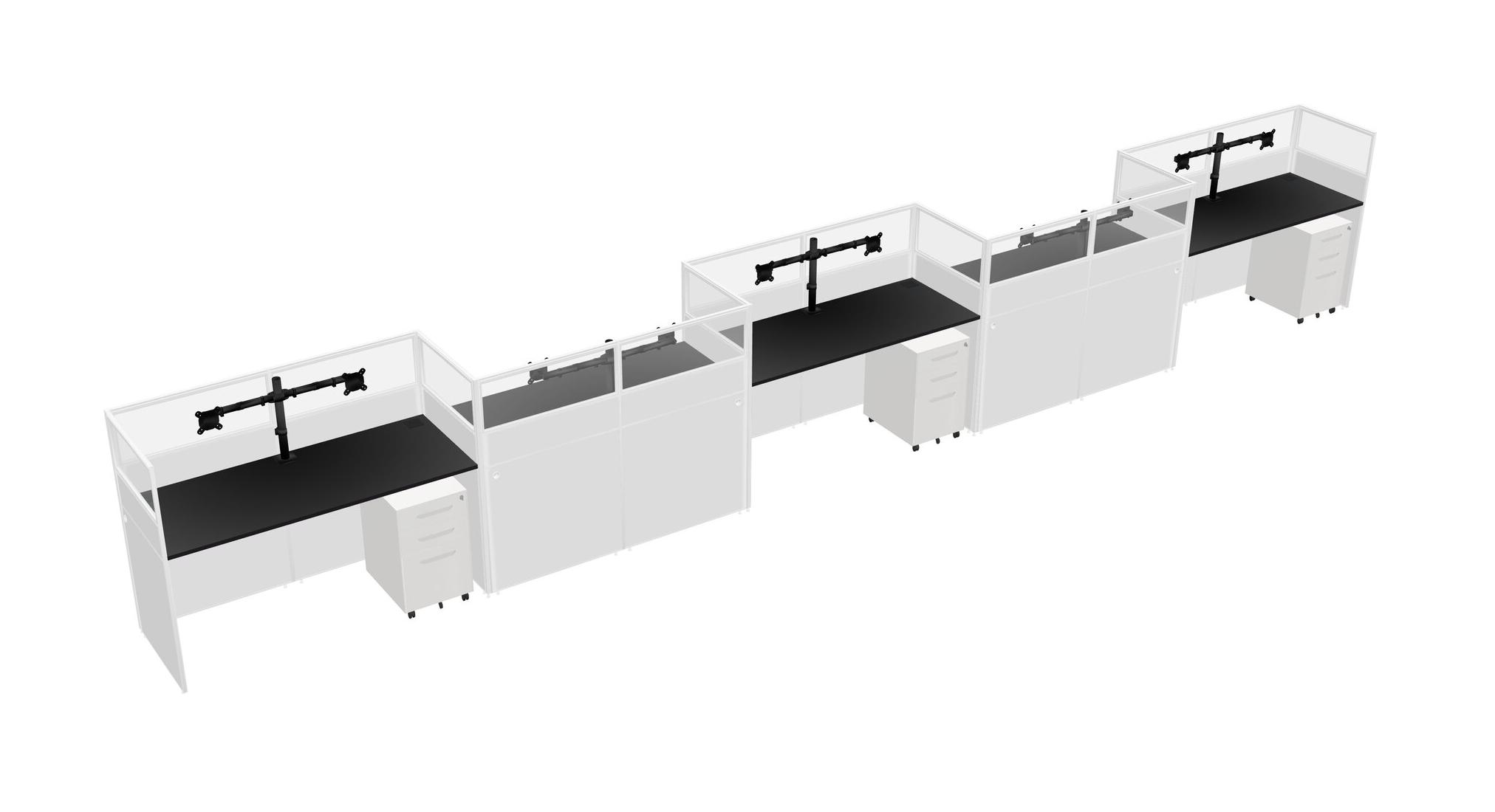 Black Rectangular Cubicle Workstations For 5 - Zigzag Formation + White Metal Mobile Drawers