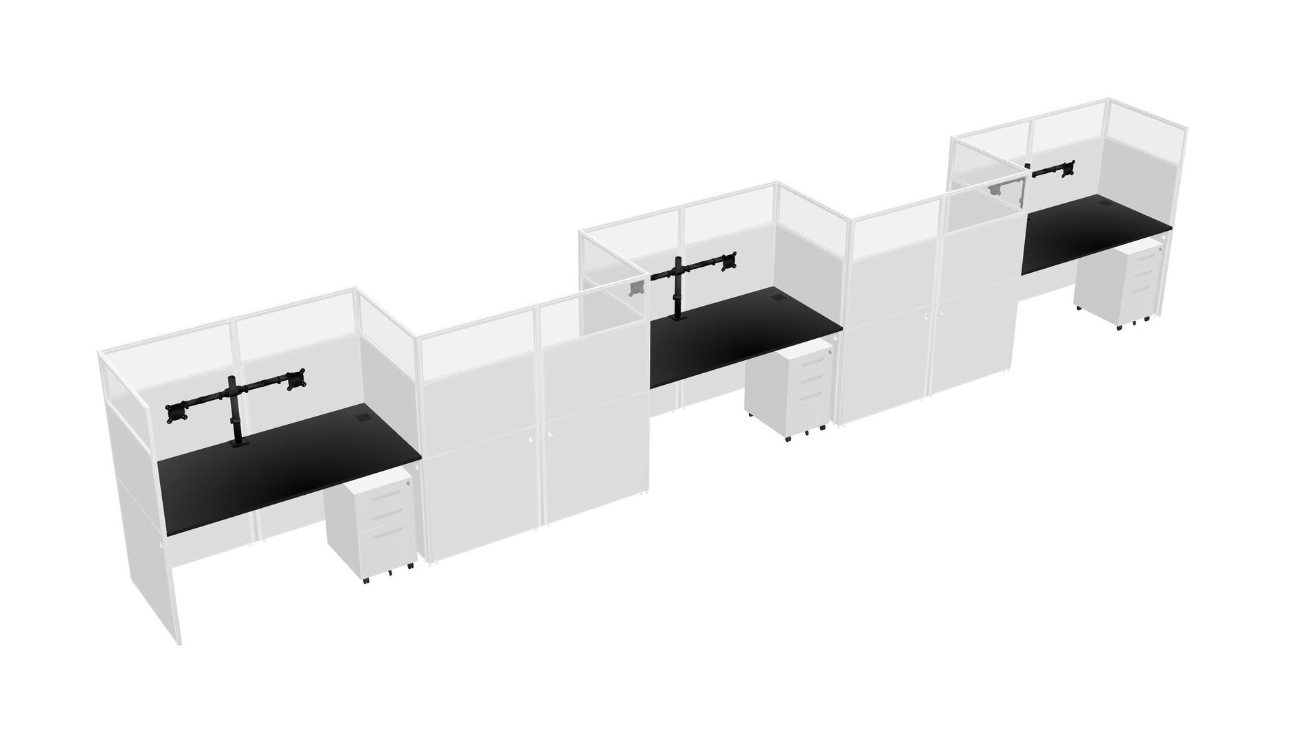 Black Rectangular Cubicle Workstations For 5 - Zigzag Formation + White Metal Mobile Drawers