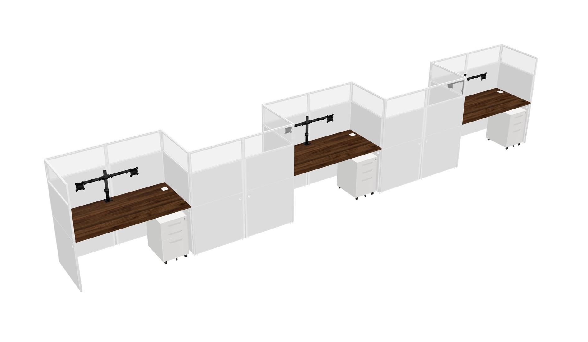 Columbia Walnut Rectangular Cubicle Workstations For 5 - Zigzag Formation + White Metal Mobile Drawers