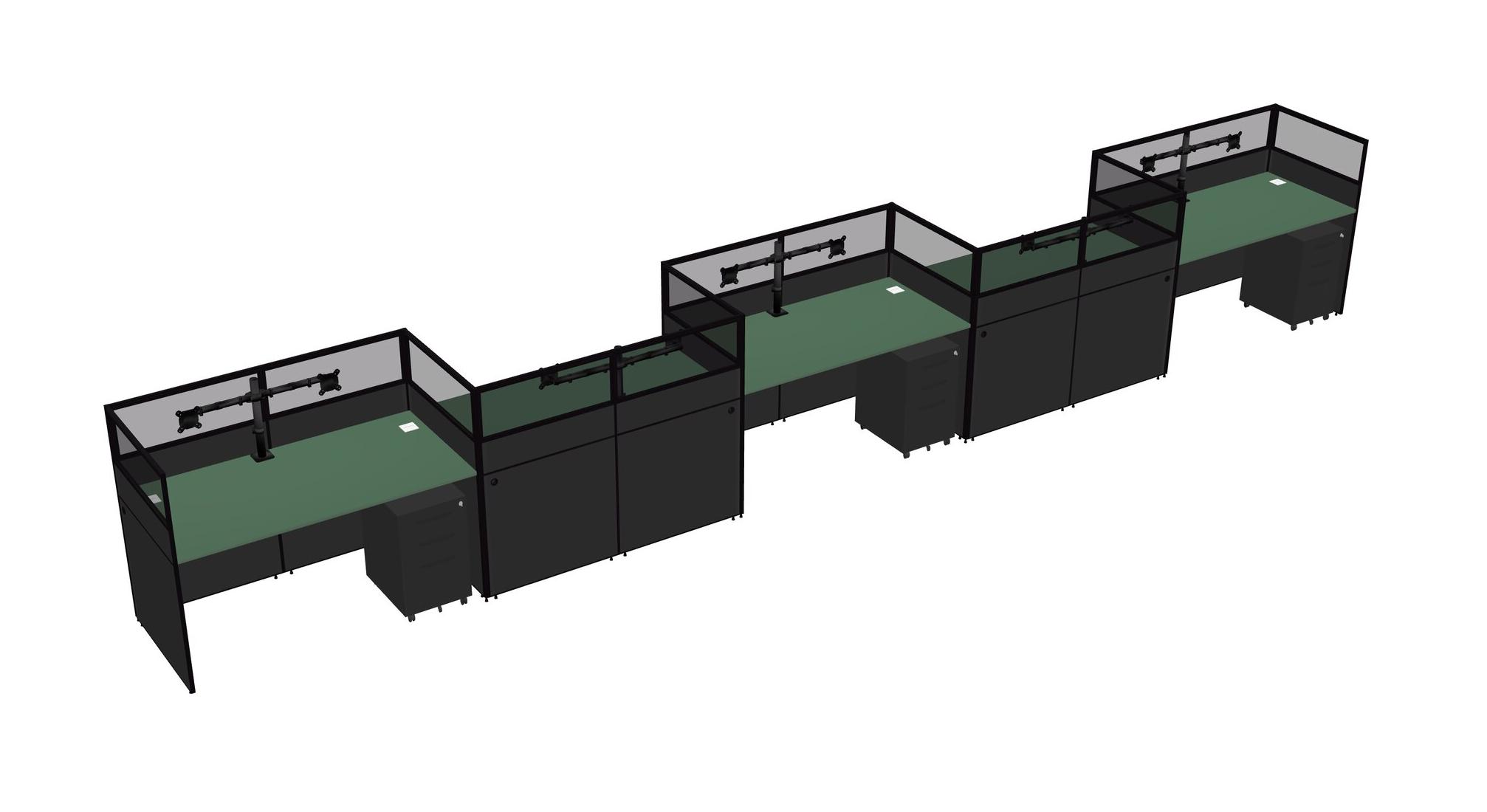 Green Rectangular Cubicle Workstations For 5 - Zigzag Formation + Black Metal Mobile Drawers
