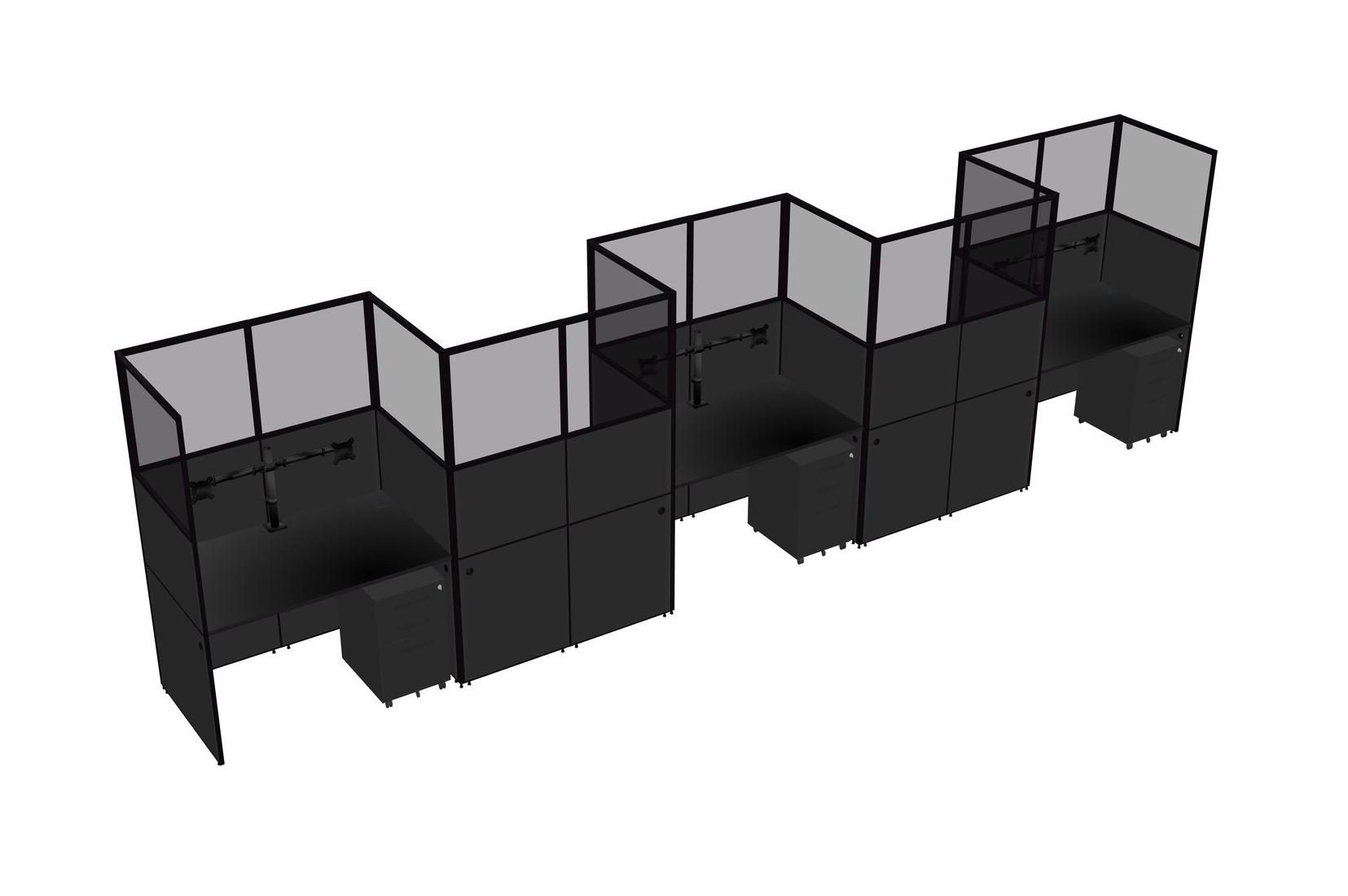 Black Rectangular Cubicle Workstations For 5 - Zigzag Formation + Black Metal Mobile Drawers
