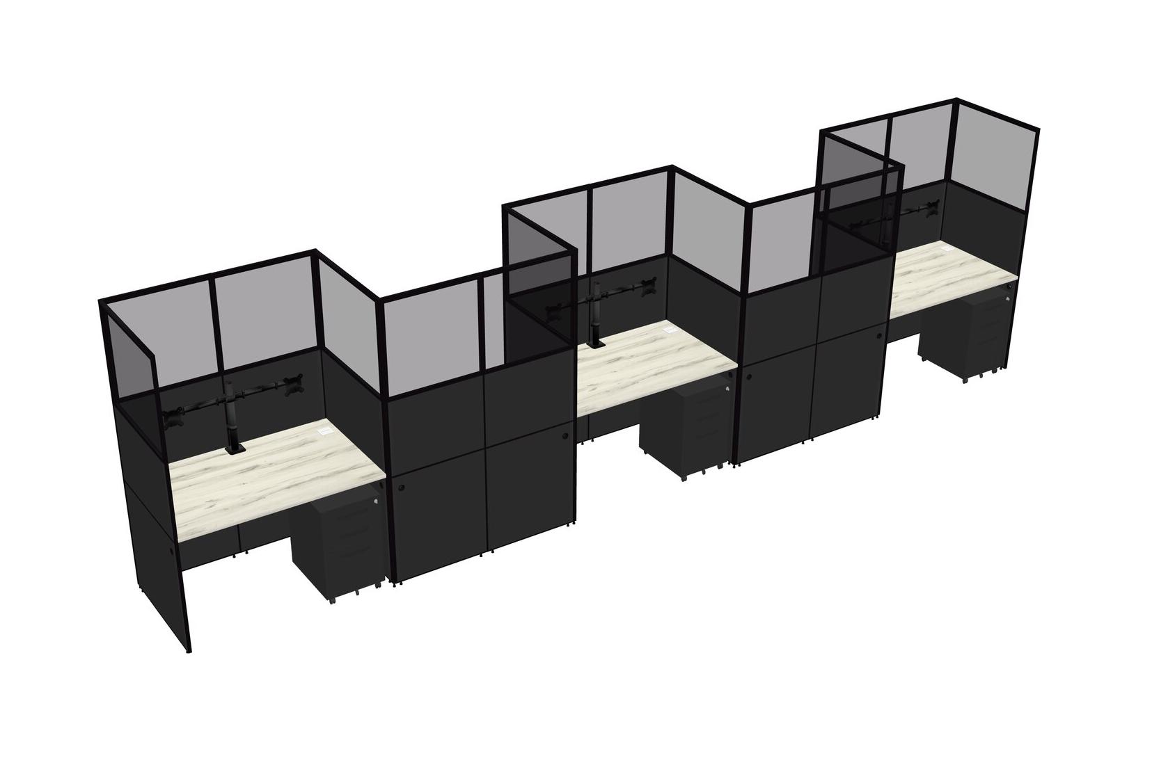 Heinne Holz Rectangular Cubicle Workstations For 5 - Zigzag Formation + Black Metal Mobile Drawers