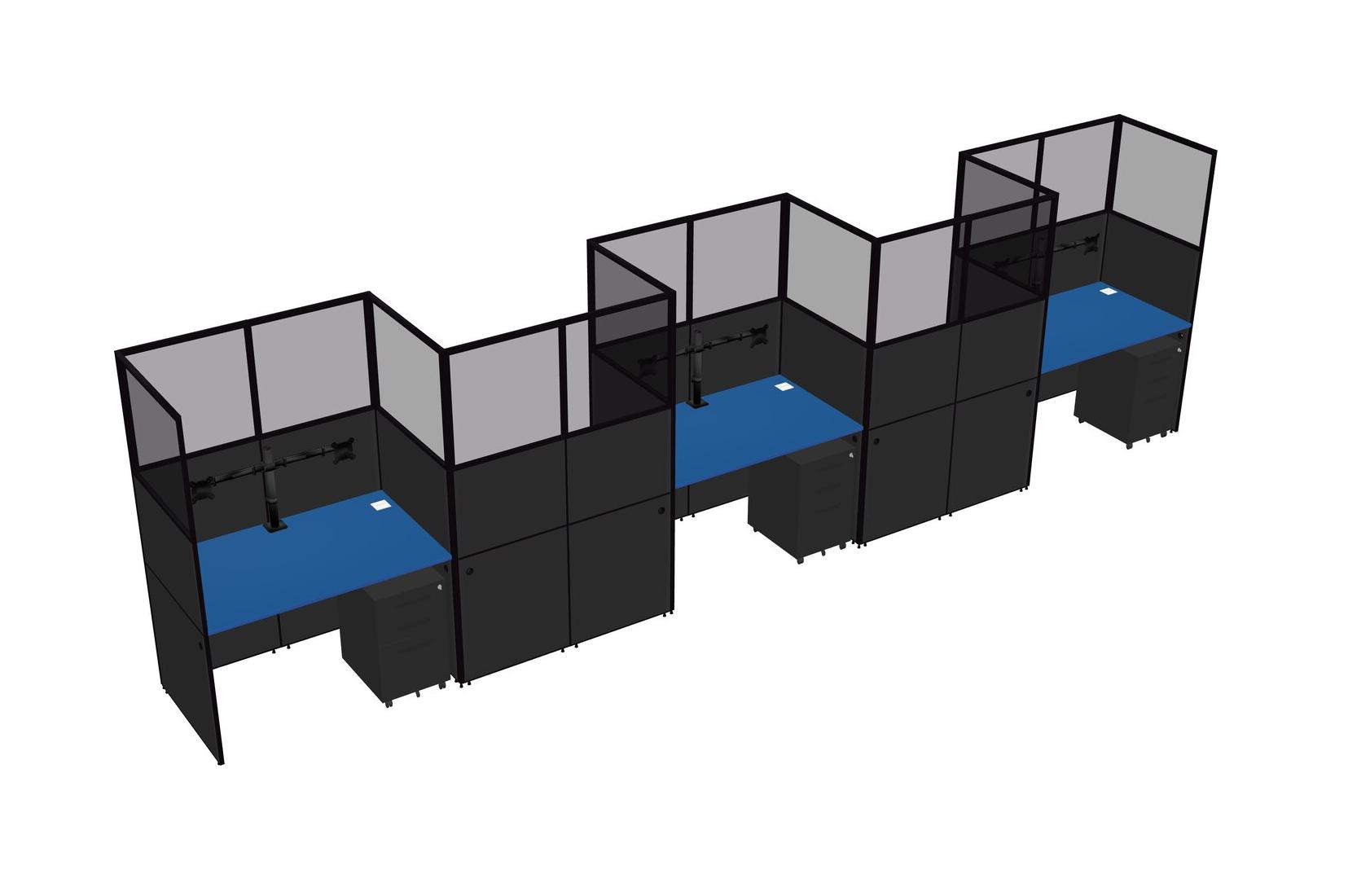 Prism Blue Rectangular Cubicle Workstations For 5 - Zigzag Formation + Black Metal Mobile Drawers