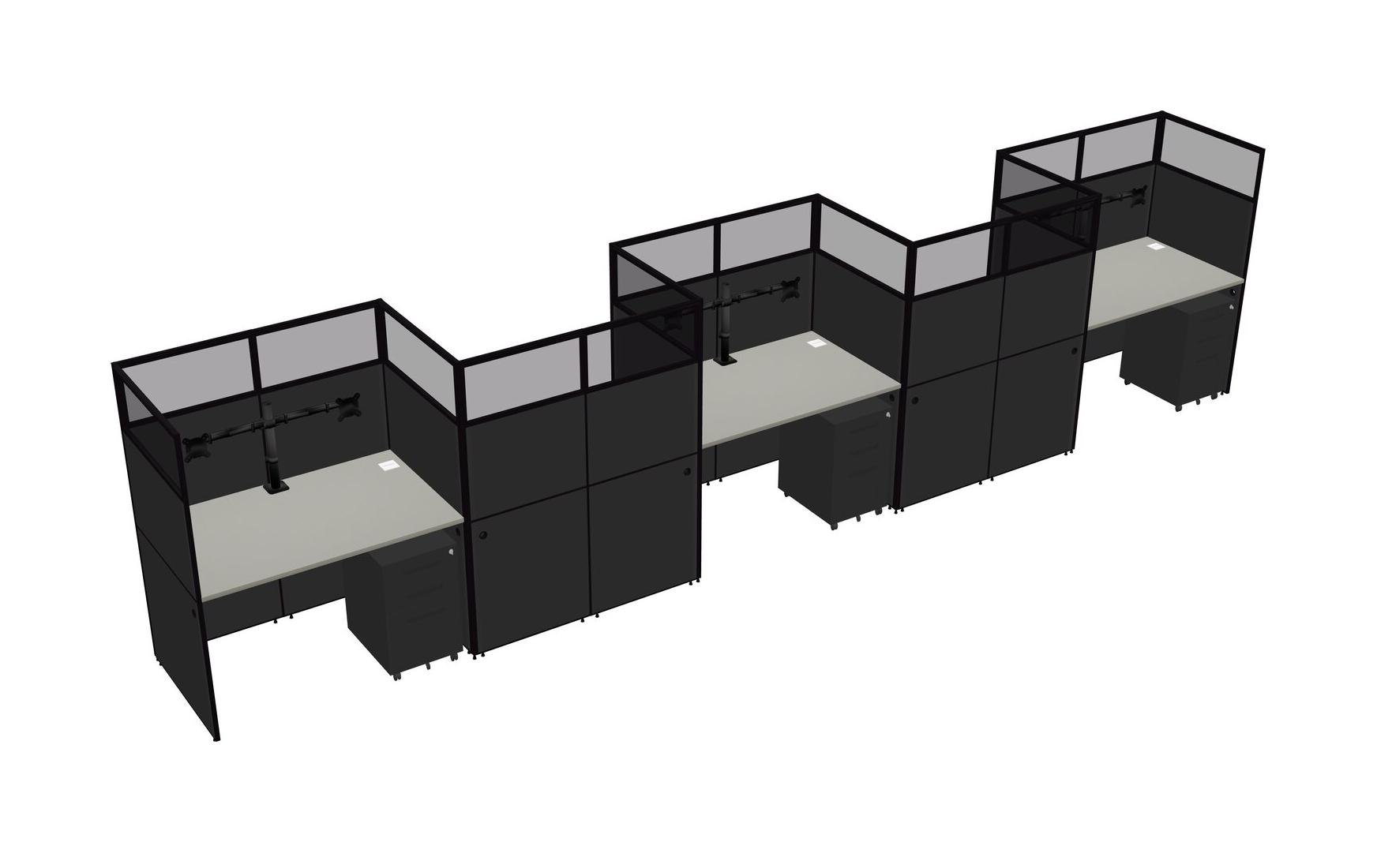 Grey Shadows Rectangular Cubicle Workstations For 5 - Zigzag Formation + Black Metal Mobile Drawers