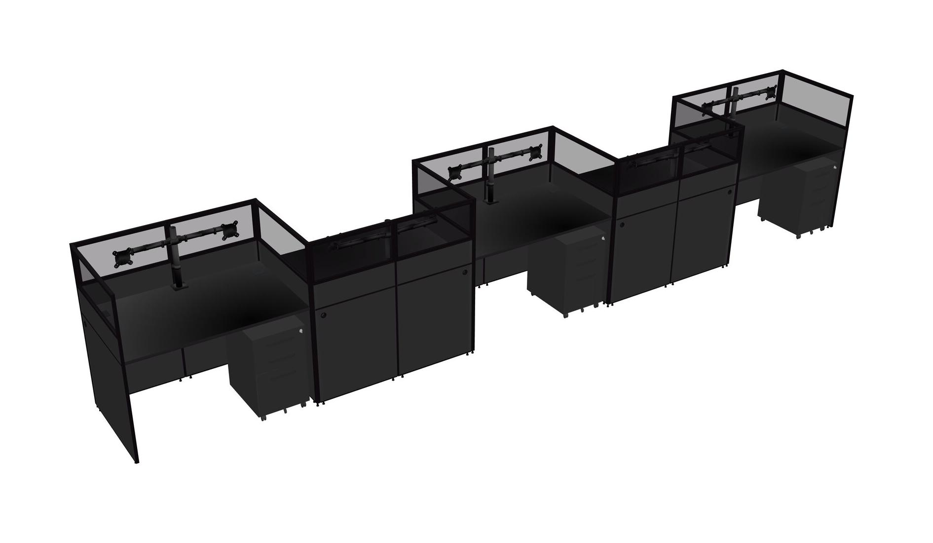 Black Rectangular Cubicle Workstations For 5 - Zigzag Formation + Black Metal Mobile Drawers