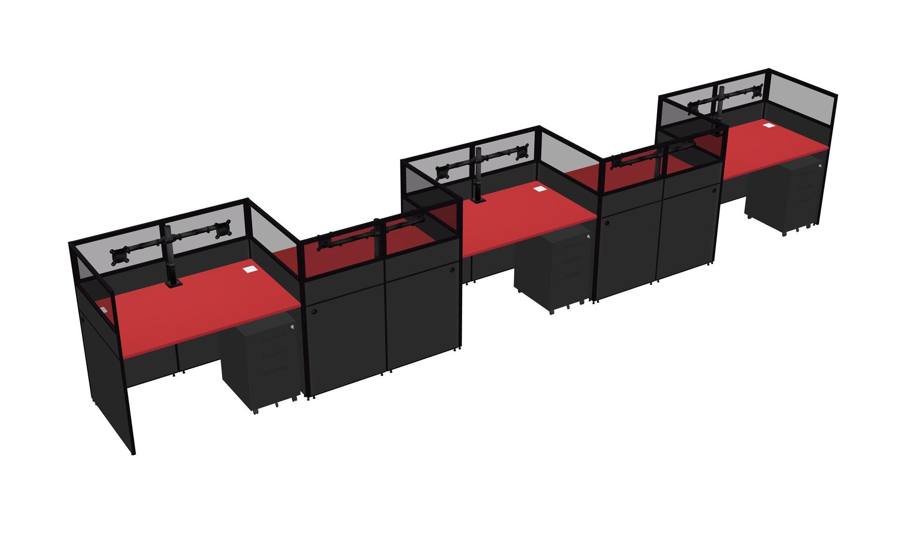 Prism Red Rectangular Cubicle Workstations For 5 - Zigzag Formation + Black Metal Mobile Drawers