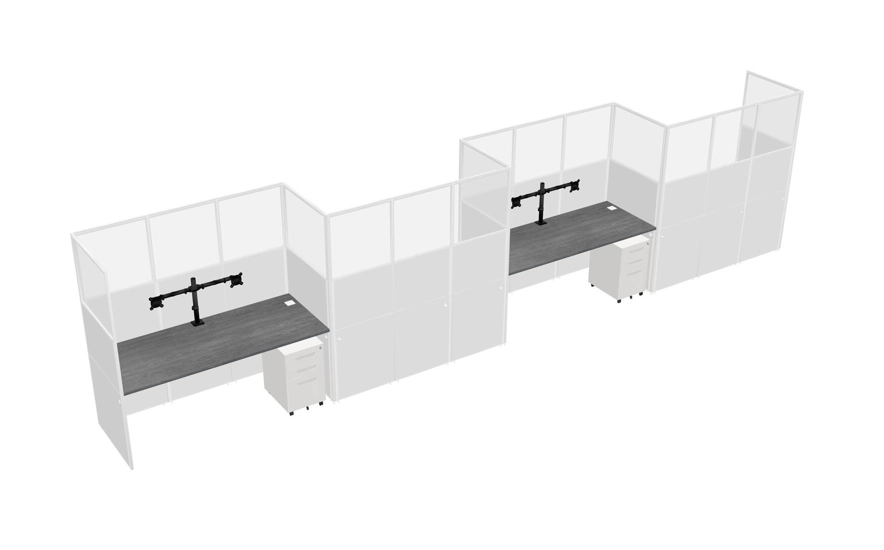 Grey Rectangular Cubicle Workstations For 4 - Zigzag Formation + White Metal Mobile Drawers
