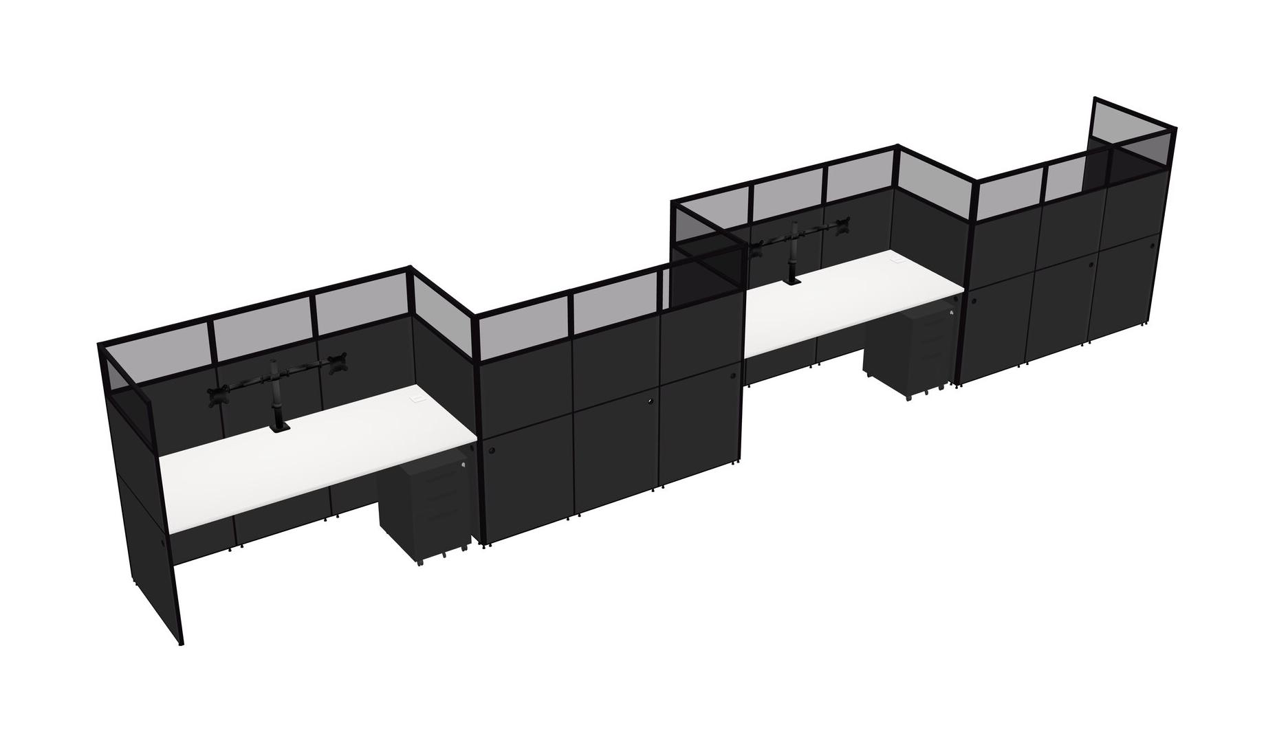 White Rectangular Cubicle Workstations For 4 - Zigzag Formation + Black Metal Mobile Drawers