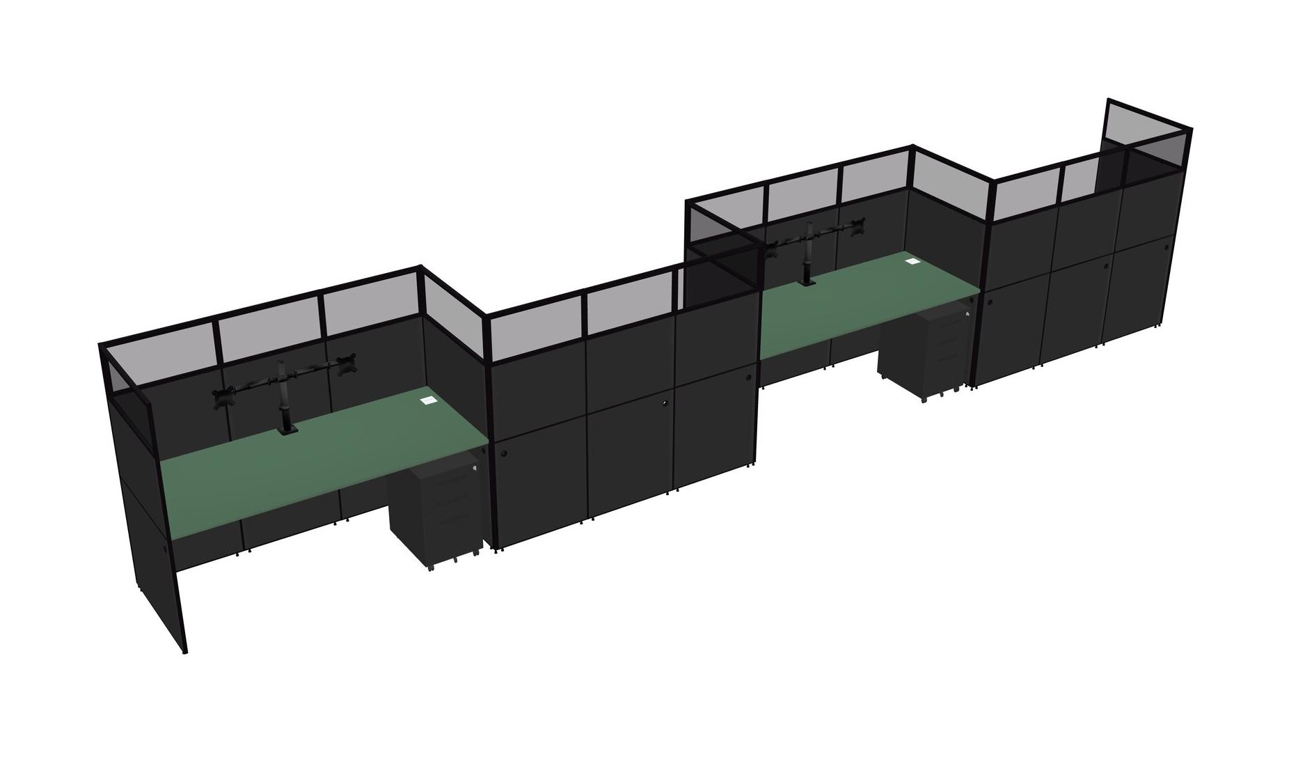 Green Rectangular Cubicle Workstations For 4 - Zigzag Formation + Black Metal Mobile Drawers
