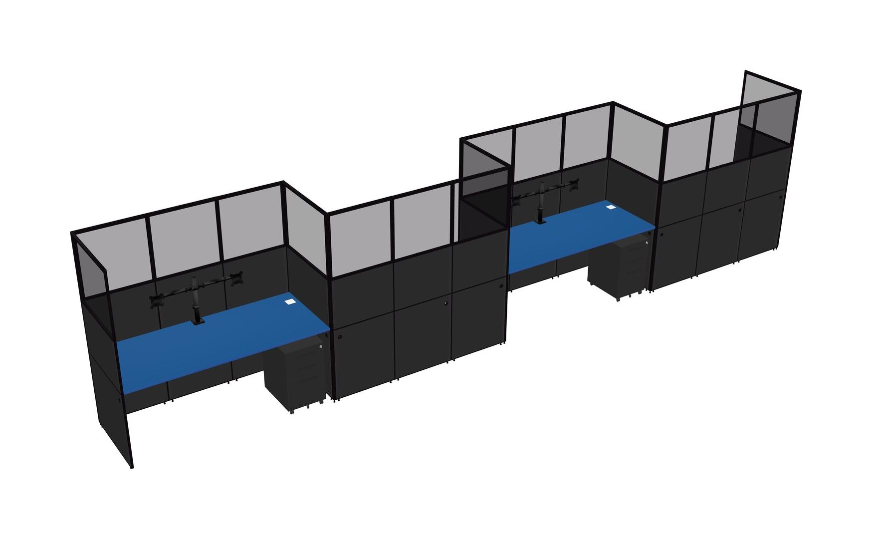 Prism Blue Rectangular Cubicle Workstations For 4 - Zigzag Formation + Black Metal Mobile Drawers