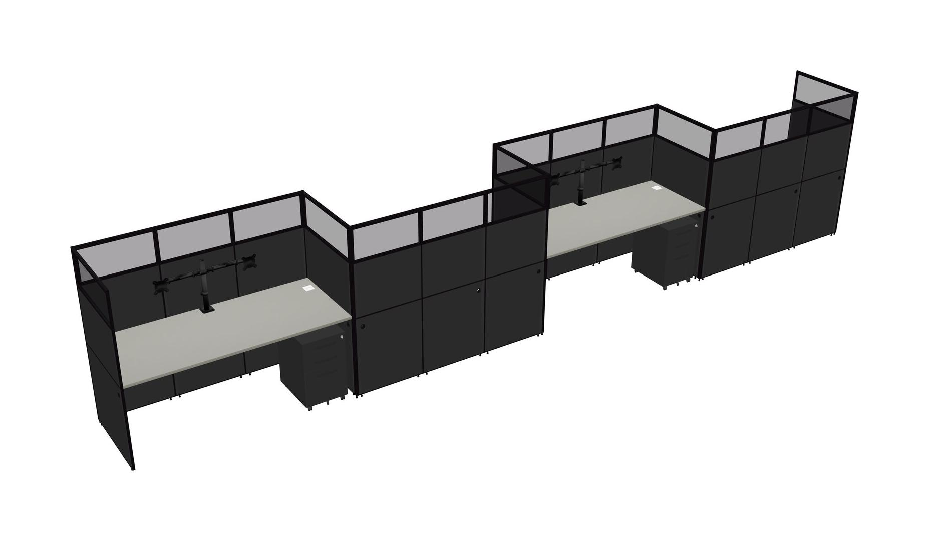 Grey Shadows Rectangular Cubicle Workstations For 4 - Zigzag Formation + Black Metal Mobile Drawers