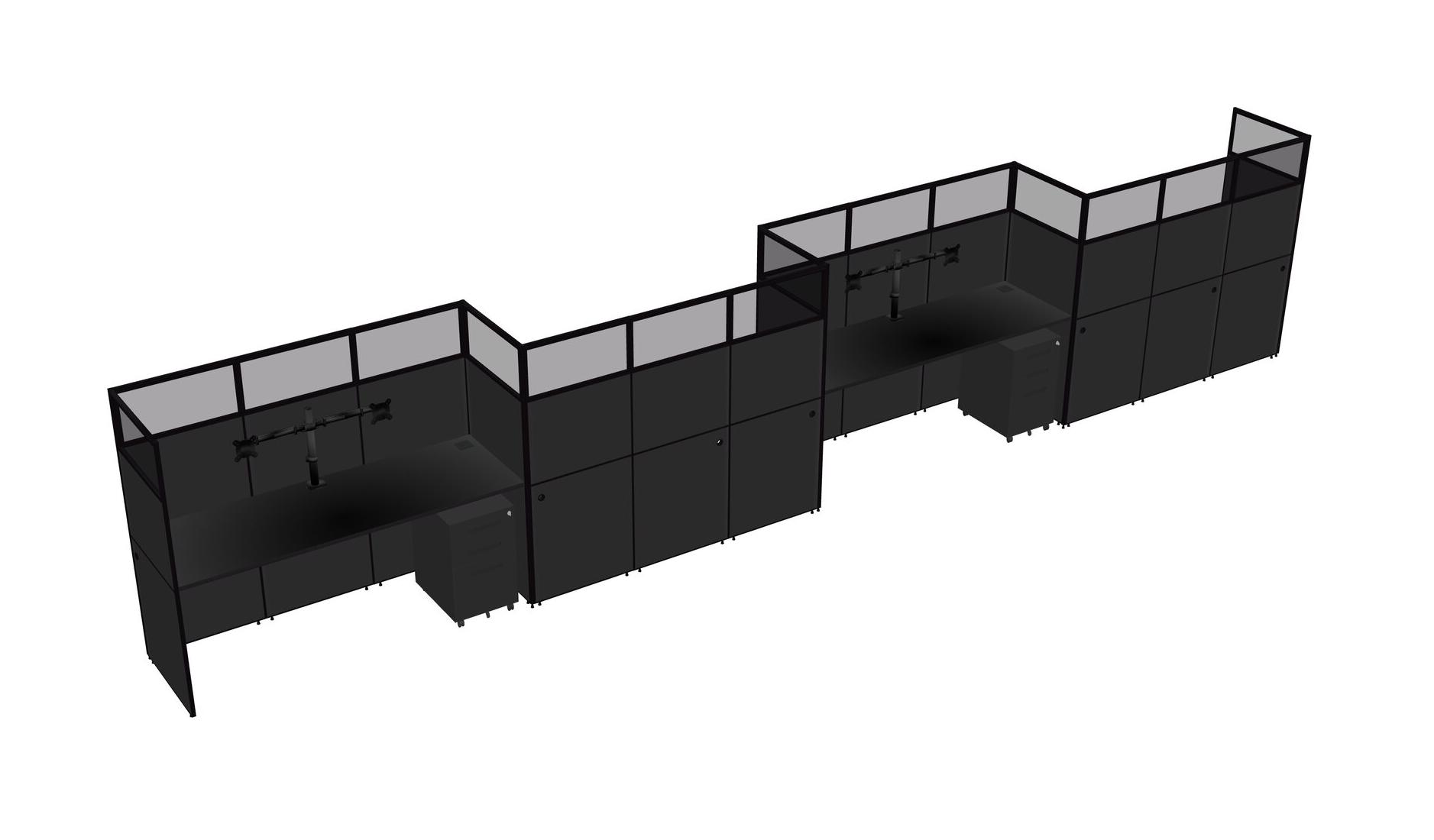 Black Rectangular Cubicle Workstations For 4 - Zigzag Formation + Black Metal Mobile Drawers