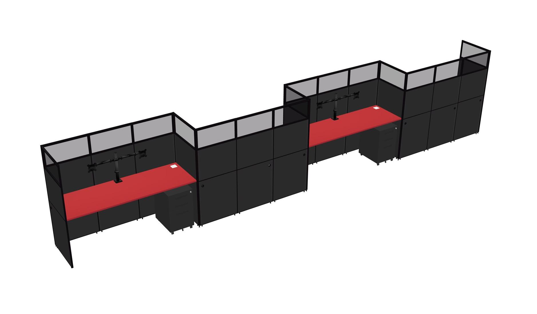 Prism Red Rectangular Cubicle Workstations For 4 - Zigzag Formation + Black Metal Mobile Drawers