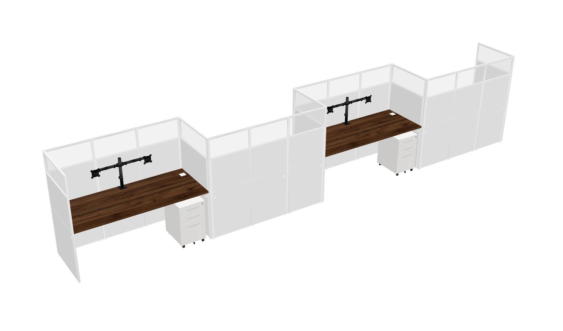 Columbia Walnut Rectangular Cubicle Workstations For 4 - Zigzag Formation + White Metal Mobile Drawers