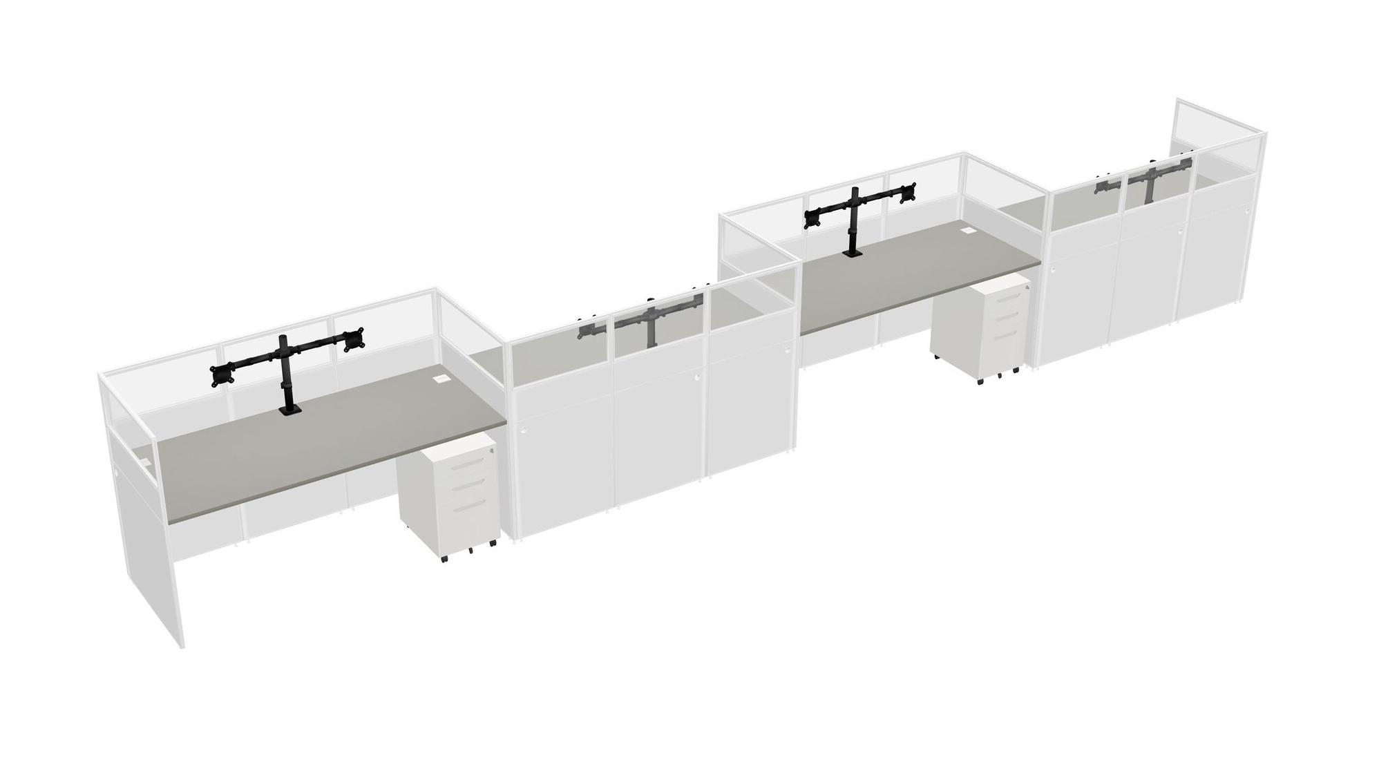 Grey Shadows Rectangular Cubicle Workstations For 4 - Zigzag Formation + White Metal Mobile Drawers