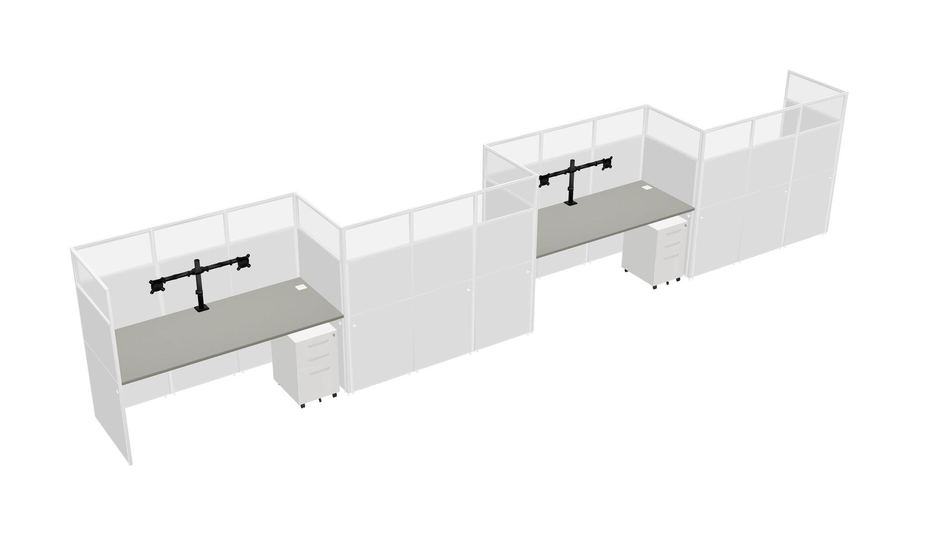 Grey Shadows Rectangular Cubicle Workstations For 4 - Zigzag Formation + White Metal Mobile Drawers