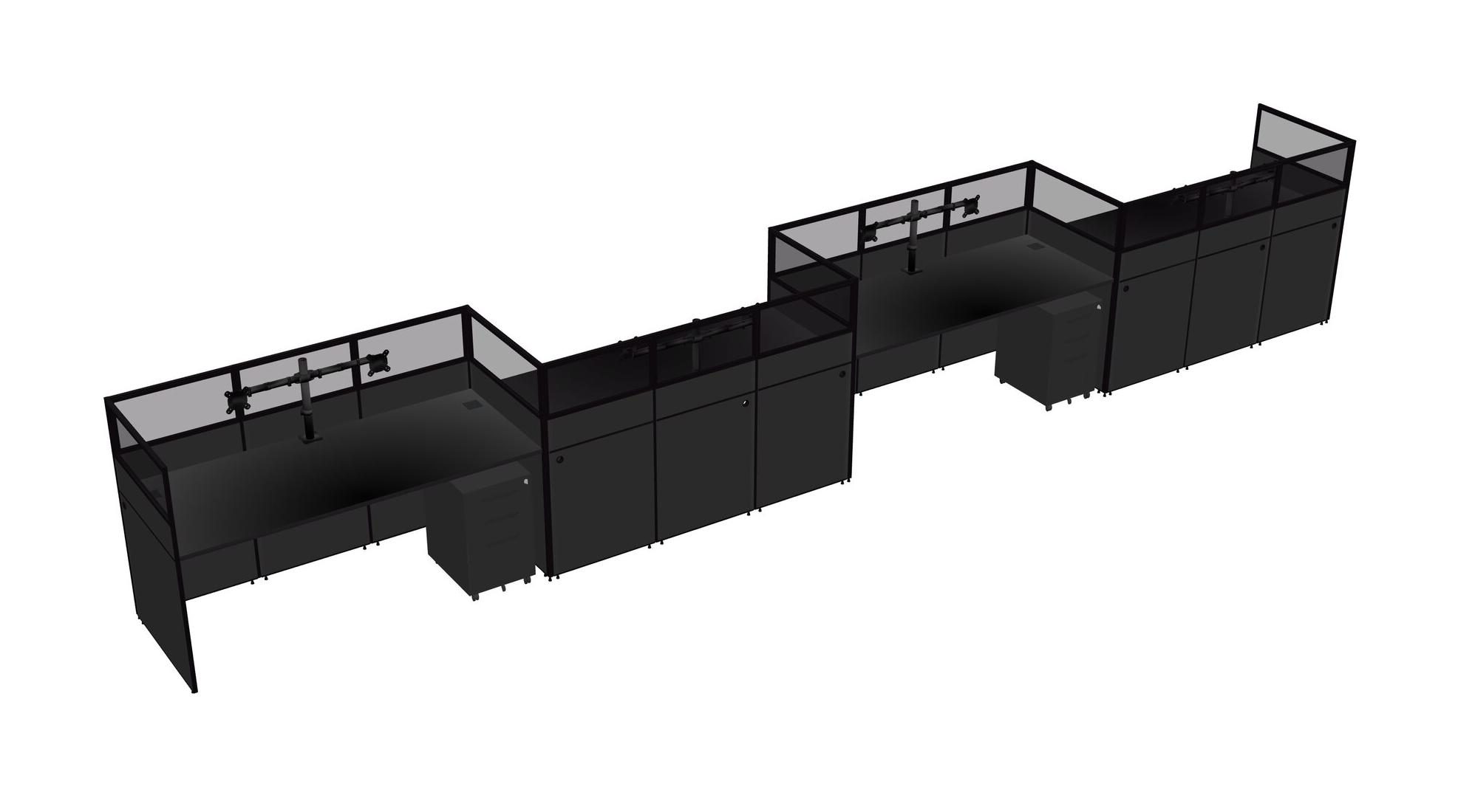 Black Rectangular Cubicle Workstations For 4 - Zigzag Formation + Black Metal Mobile Drawers